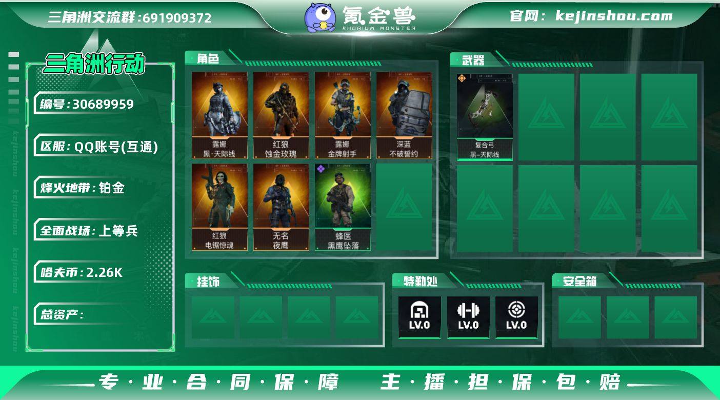 GT163 红狼-蚀金玫瑰 【7干员】总资产M;46.6M 哈弗币;2269k 传说皮数22 烽火地带60级 干员;7 【红狼-蚀金玫瑰,露娜-黑。天际线,电锯魂,无题密令红狼-电锯惊魂,蜂医-送葬人。无题密令,金牌射手,不破誓约,露娜-金牌射手,深蓝-不破誓约,无名-夜鹰】