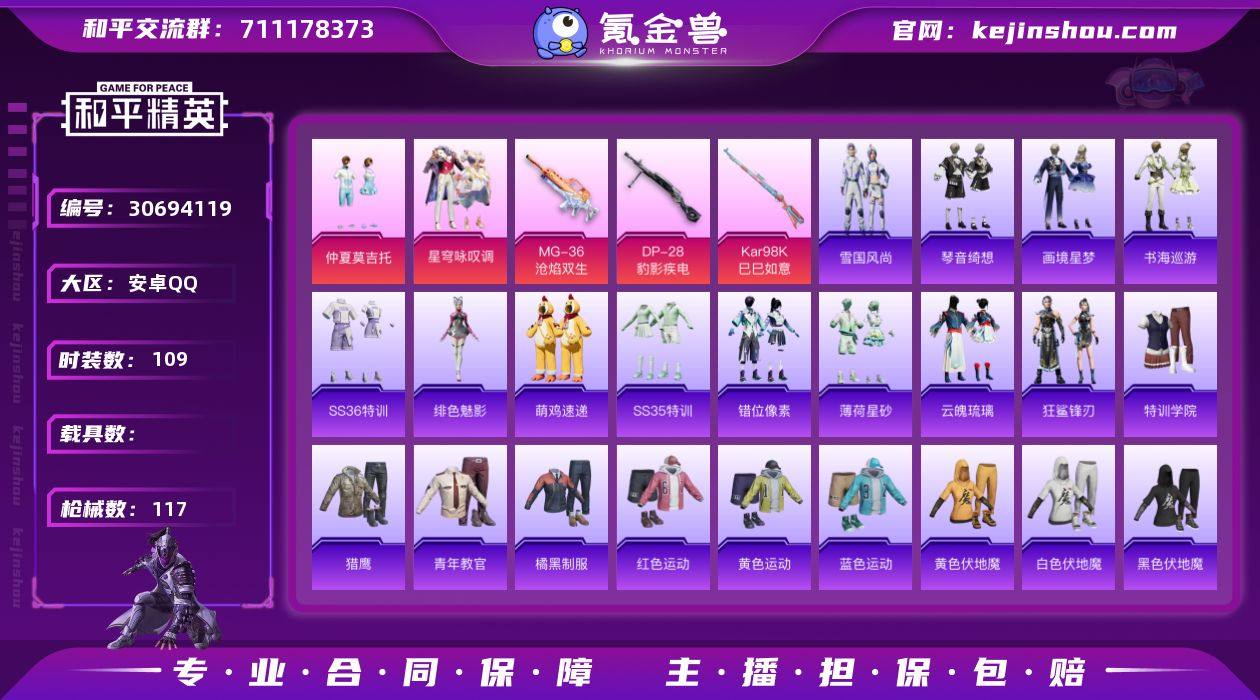 【0载具 3特效枪 2粉装 117枪皮 109套装】小番茄 地铁号满天赋 小丑鱼 暗影哥特 兔兔鞋 狂沙舞者 套装-狂沙舞者,套装-暗影哥特,套装-小丑鱼,套装-NV战队服,套装-仲夏莫吉托,套装-老实芭蕉,套装-星穹咏叹调 Kar98K-巳巳如意,MG-36-沧焰双生,DP-28-豹影疾电,编号:ZPPAO79