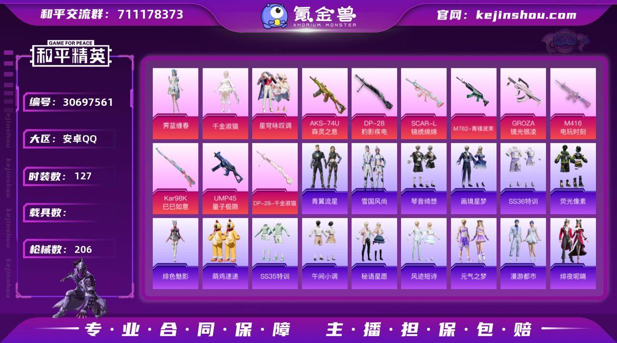 地铁号 满级天赋 13王牌4卓越 金耀舞者,老实芭蕉,千金淑猫,霁蓝缠春,星穹咏叹调 SCAR-L-锦绣绵绵,M762-青锋波束,GROZA-镜光银凌,M416-电玩时刻,Kar98K-巳巳如意,AKS-74U-森灵之息,UMP45-量子极限,DP-28-豹影疾电,DP-28-千金淑猫 21/4 mp58-71,编号:WPXCP96