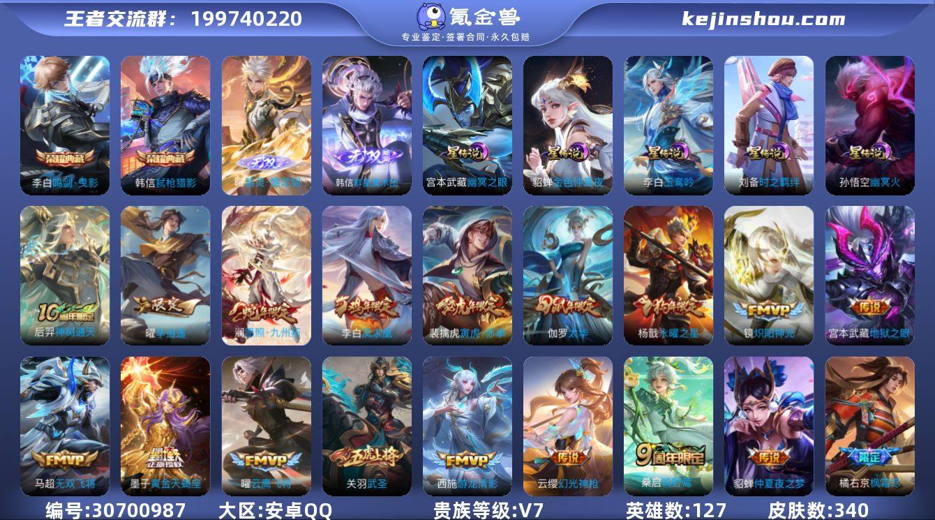 省标云中君,很多市标,韩信差一个全皮,耀无双,李白韩信典藏 之前v8,掉到v7,实名认证还有一个月,可小刀