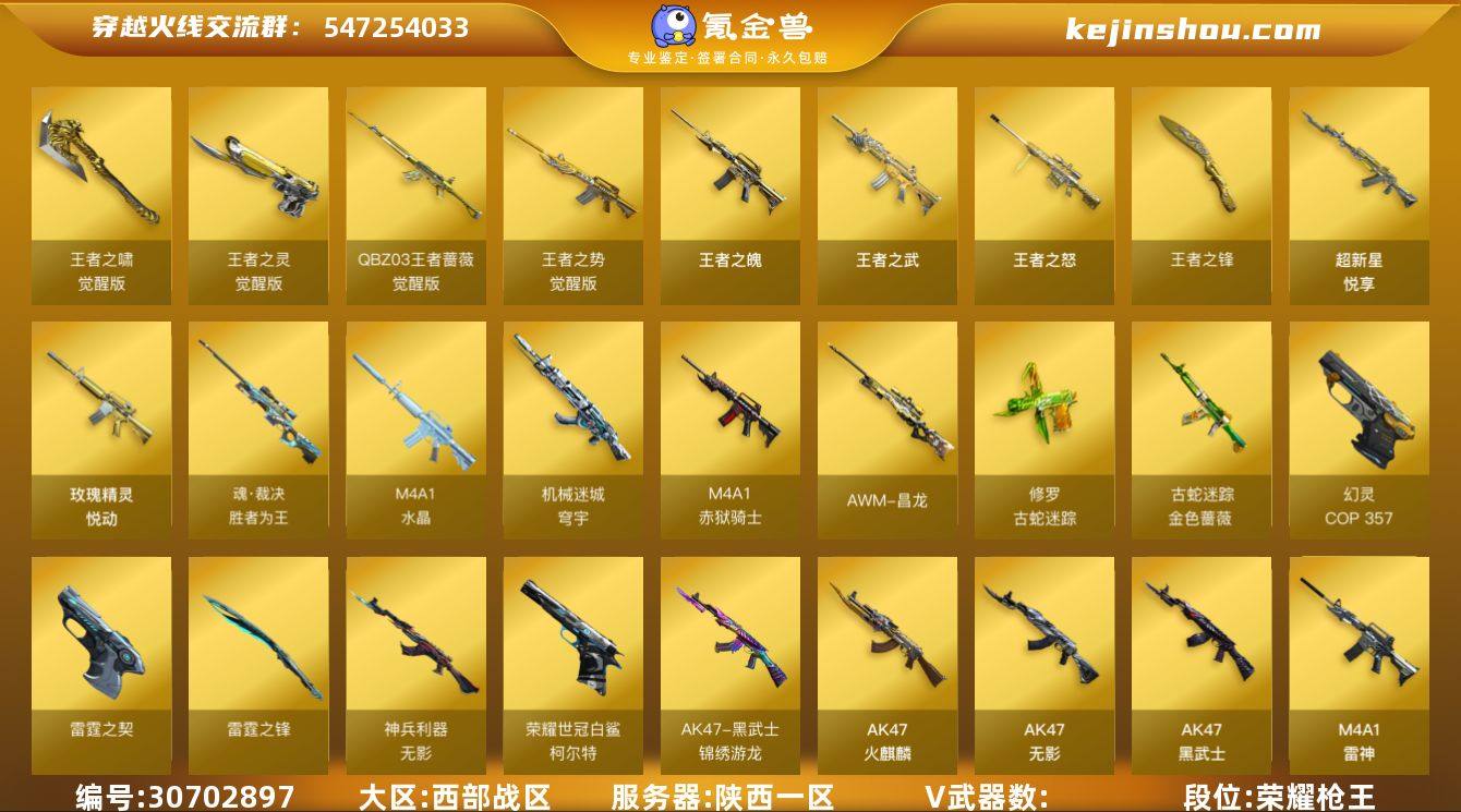 YXB 特价秒杀【陕西一区】【可二次实名】【可排位】【荣耀枪王】【会员等级VIP6】【CF点2006】【V武器数102】【幻神三件套】【幻神4皮】【6烈龙】【死亡之眼】【神工天巧套装X1套】【竞技荣光套装X3套】【雷霆套装X2套】【传说影煞】【M200-幻神】【幻神-荣耀世冠白鲨2023 皮肤】【幻神-青鹤】【幻神-电流骇客 皮肤】【M200-幻神-黄忠皮肤】【M200-幻神音效卡】【M200-竞技荣光】【Kar98K-星神】【Kar98K-星神音效卡】【AWM-裁决】【裁决-胜者为王 皮肤】【AWM-裁决-百城联赛天津皮肤】【Scar Light-白虎】【Scar Light-白虎-暗星】【QBZ03-金色蔷薇】【QBZ03-金色蔷薇音效卡】【QBZ-03-王者蔷薇-觉醒版】【G36C-幻影】【HK417-朱雀】【M14EBR-玄武】【柯尔特-荣耀世冠白鲨2023】【柯尔特-竞技荣光】【USP-神工天巧】【雷霆之契】【COP 357-幻灵】【炽芒蝶刃】【加特林-炼狱】【RPK-盘龙】【汤姆逊-烈龙】【死亡之眼】【传说影煞】【电竞教官-云悠悠】【葵】【乔伊教练】【蛇隐宗】【修道士】【空】【M4A1-雷神】【雷神-荣耀之魄】【雷神-维纳斯皮肤】【雷神-星空】【雷神-暗月】【AK47-火麒麟】【火麒麟-典雅胡桃 皮肤】【火麒麟-华夏之心】【火麒麟-平天大圣】【火麒麟-CFSTAR】【火麒麟-雷神】【M4A1-黑骑士】【黑骑士耀金皮肤】【M4A1-黑骑士音效卡】【M4A1-黑龙】【M4A1-黑龙-361】【Barrett-毁灭】【巴雷特-毁灭-CFPL冠军】【毁灭耀金皮肤】【毁灭-星空】【毁灭-暗月】【毁灭-黑大圣皮肤】【毁灭-虹光风暴 皮肤】【Barrett-毁灭音效卡】