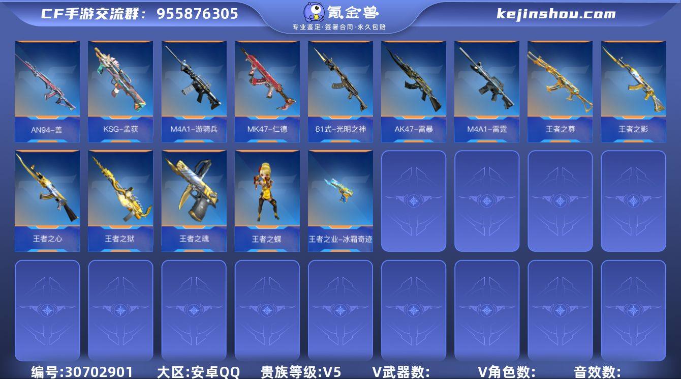 TZ2937【V6 王者之影/尊/霆 王者之神-冰霜奇迹 M200幻神 仲达 仁德】【等级】132【区服】手Q-苹果【金角色数】8【金武器数】303【金V角色】乔月 祝融夫人 幽灵刀锋-觉醒 零-新生 关小雨 宋雨琦 春节兰-X 祝融夫人 复仇者 复仇者【金V武器】擎天觉醒 马来剑-毁灭 麒麟刺 M4A1-死神 巴雷特-毁灭 QBZ03-枪娘 末日裁决觉醒 寒霜烈龙 沙鹰-修罗 AK47-无影 QCW05-变形金刚·大黄蜂 巴雷特-极光 沙鹰-修罗 AK47-木兰 M1887-幽冥玄喵觉醒 M4A1-铁胆虎魄 M4A1-雷神 屠龙 M14EBR-拂影 AK47-雷麒麟 AK47-黑武士觉醒 沙鹰-修罗 柯尔特-伏刹山海觉醒 丛林匕首-庆龙觉醒 AK47-策 王者之霆 黑骑士手雷 M4A1-卧龙觉醒 M4A1-黑龙 M4A1-黑骑士 47-云舞 沙鹰-修罗 沙鹰-修罗 M200-幻神 沙鹰-火麒麟 龙爪手-鼓龙 M1216-血月 QBZ03-金色蔷薇 方天画戟 AK47-火麒麟 M4A1-太白诗仙 MAC-10-孟获 M4A1-仲达 CZS2-仲康 柯尔特-仲达 CZ75-穷奇 SCAR Light-白虎 81式-光明之神 巴雷特-坦克堡垒 末日裁决者 AWM-天龙 蟒蛇-奉先 气勇胆烈戟 双持GLOCK18-本初 嗜血金鲨 分裂雷-偃蛇 烟雾弹-星际宇航 M4-P-星际宇航觉醒 SCAR-探星者 烟雾弹-匿影遁形 RPK-盘龙 地狱火 黑武士手雷 黑武士闪光弹 黑武士烟雾弹 雷神手雷 雷神闪光弹 雷神烟雾弹 手雷-游骑兵 屠龙 幻兽手雷 幻兽闪光弹 幻兽烟雾弹 炽芒蝶刃 燃烧弹-黑骑士 燃烧弹-黑骑士 燃烧弹-黑骑士 双持沙鹰-元让 M16-恶魔 沙鹰-神兵修罗 手斧-机械迷城 G3A3-衍神兵 秋逸觉醒 粘性手雷-附骨之虫觉醒 Origin12-机变奇蛇觉醒 RPK-赤炎盘龙 M4A1-冰锋觉醒 蝴蝶刀-极光 98K-星神 SKS-美杜莎 白骨利刃 黑骑士烟雾弹 火麒麟闪光弹 沙鹰-修罗 黑骑士闪光弹 AK12-天启 屠龙 屠龙 屠龙 烈焰弓 高爆