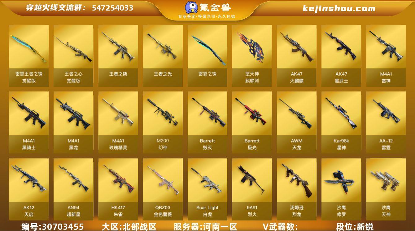 YXB 特价秒杀【河南一区】【可二次实名】【可排位】【新锐1】【CF点10794】【V武器数62】【6烈龙】【堕天神套装X1套】【堕天神套装X1套】【雷霆套装X2套】【M200-幻神】【Kar98K-星神】【Scar Light-白虎】【QBZ03-金色蔷薇】【HK417-朱雀】【汤姆逊-烈龙】【王者-瞳-闭月羞花】【炫】【M4A1-雷神】【M4A1-雷神-白鲨皮肤】【雷神-赛博朋克】【雷神-烈虎皮肤】【雷神-耀金皮肤】【AK47-火麒麟】【火麒麟-战神关羽】【火麒麟-平天大圣】【火麒麟-CFSTAR】【火麒麟-雷神】【M4A1-黑骑士】【黑骑士-摸金校尉】【黑骑士-暗月】【M4A1-黑骑士音效卡】【M4A1-黑龙】【黑龙-能量核心】【M4A1-黑龙音效卡】【Barrett-毁灭】【毁灭-冠军之怒】【巴雷特-毁灭-CFPL冠军】【Barrett-毁灭音效卡】