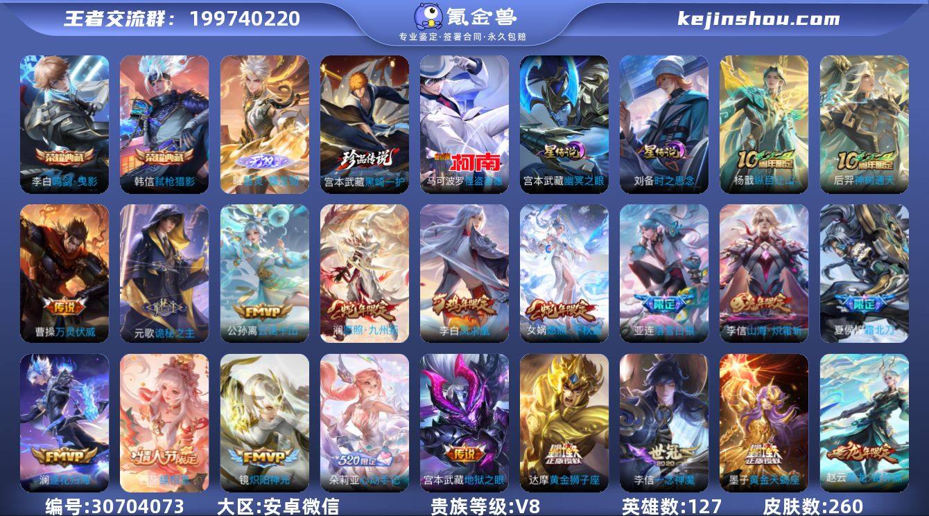 可二次,v8,260皮2典藏1无双2珍品传39高质量传2星传24按键2签名按键号上有至尊宝/贵族积分70220,王者印记7次,积分夺宝91次,游戏段位已赛季更新为主