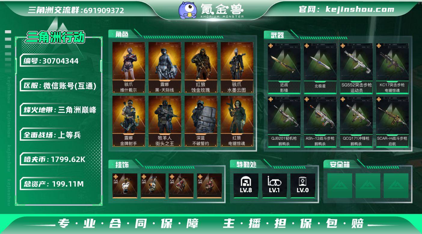 实名:可二次实名 总资产:199.11M 哈夫币:1799.62K 烽火地带段位:三角洲巅峰 烽火地带等级:60 全面战场段位:上等兵 全面战场等级:35 8级仓库,1级潜水中心,0级收藏室,训练中心,靶场