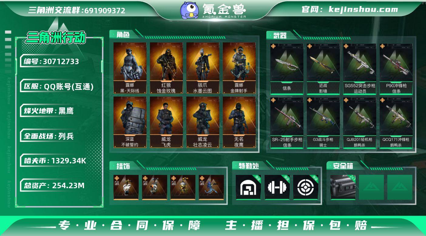 实名:不可二次实名 总资产:254.23M 哈夫币:1329.34K S7高级安全箱(2x3) 烽火地带段位:黑鹰 烽火地带等级:60 全面战场段位:列兵 全面战场等级:15 满级仓库,满级训练中心,满级靶场,满级潜水中心,满级收藏室