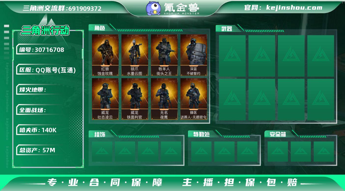 S881总资产57M,哈夫币14w,近战3 枪皮数量294,红狼-蚀金玫瑰/骇爪-水墨云图/深蓝-不破誓约/无名-夜鹰/威龙-壮志凌云/威龙-铁面判官/牧羊人-街头之王/蜂医-送葬人无题密令,近战-黑海/近战-影锋,战场等级12列兵, 行动等级60钻石,安全箱等时效性道具请以游戏内数据为准,详情请看图