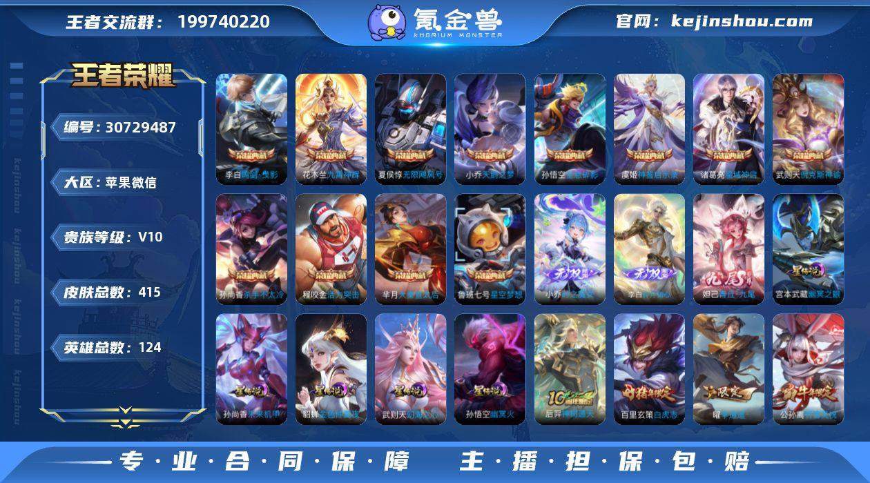 全英雄,423个皮肤,V10尊贵玩家