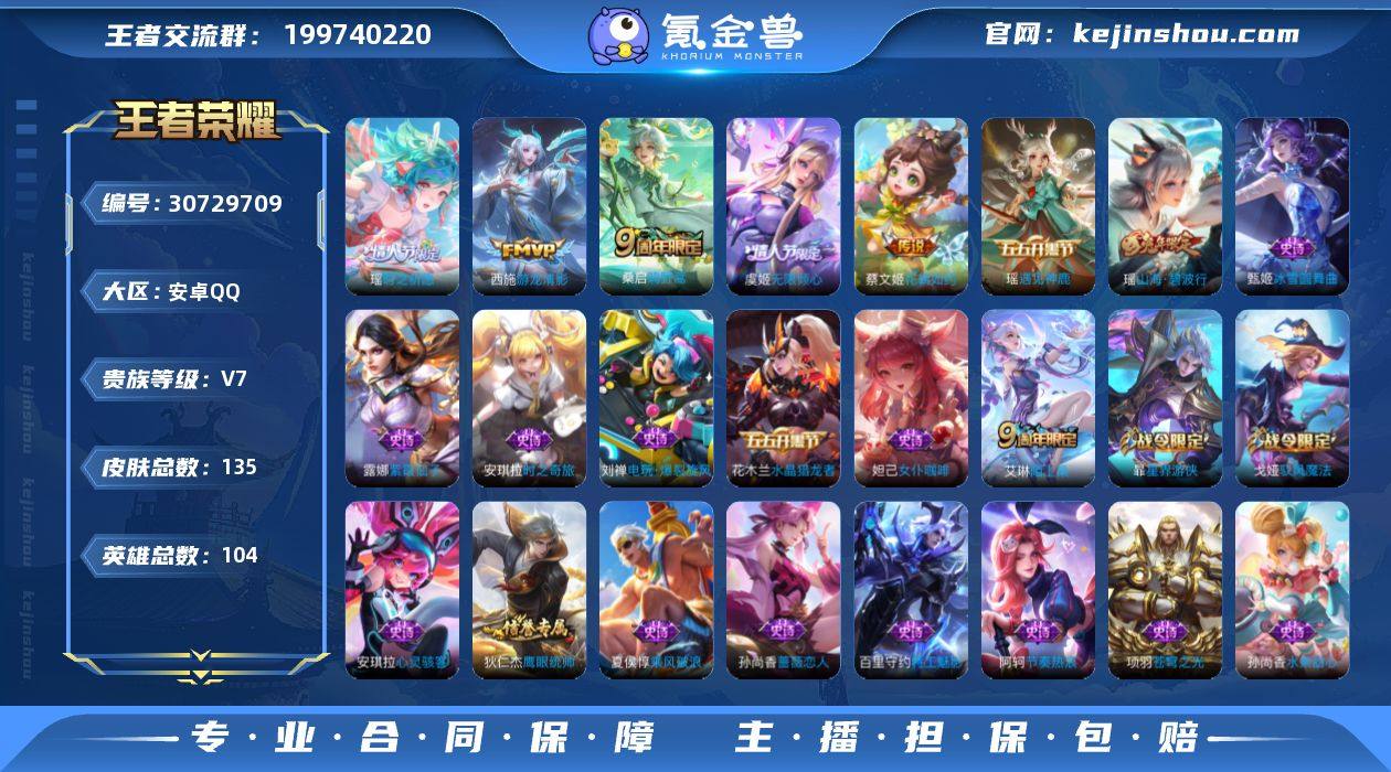 贵族等级:V7 典藏皮肤数:0 珍品无双皮肤数:0 无双皮肤数:0 珍品传说皮肤数:0 传说皮肤数:5 史诗皮肤数:31 皮肤数:135 英雄数:104 段位:铂金