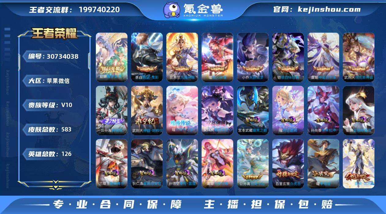 BHC52303,打野90段/小魔方/1.65w大国标兰陵王/1.67w小国标周瑜/1.57w小国标铠/1.47w小国标露娜/1.4w小国标赵云/1.37w小国标澜/1.35w小国标老虎/1.33w小国标芈月/1.2w小国标韩信/9638小国标沈梦溪/5个万战/16金标/8星元/83按键/3天幕,,苹果WX-V10-最强王者段位-126英雄-583皮肤-7典藏皮肤-1典藏英雄-1珍品无双-2无双-2珍品传说-94传说-212史诗 【大国标】:大国标兰陵王 【小国标】:小国标周瑜,小国标铠,小国标露娜,小国标赵云,小国标澜,小国标裴擒虎,小国标芈月,小国标韩信,小国标沈梦溪 【星元皮肤】:虞姬无限倾慕,孙悟空零号雷霆,兰陵王荆棘舞步,瑶时之愿境,宫本武藏幽冥之眼,狄仁杰星际治安官,孙尚香未来机甲,貂蝉金色仲夏夜 【英雄全皮】:刘禅全皮,典韦全皮,达摩全皮,武则天全皮,姜子牙全皮,刘邦全皮,娜可露露全皮,橘右京全皮,牛魔全皮,钟馗全皮,苍全皮,雅典娜全皮,太乙真人全皮,东皇太一全皮,苏烈全皮,狂铁全皮,李信全皮,盾山全皮,猪八戒全皮,鲁班大师全皮,阿古朵全皮,夏洛特全皮,司空震全皮,金蝉全皮,戈娅全皮,影全皮,姬小满全皮 【荣耀典藏】:武则天英雄,武则天倪克斯神谕,小乔天鹅之梦,李白鸣剑曳影,花木兰九霄神辉,铠银白咏叹调,虞姬神鉴启示录,瑶拾光映像 【珍品无双】:貂蝉馥梦繁花 【无双皮肤】:武则天神器明辉仪,公孙离离恨烟 【珍品传说】:瑶大耳狗之梦,安琪拉酷洛米之心 【传说皮肤】:公孙离云诺千山,司空震愿照山河定,云缨幻光神枪,裴擒虎祥瑞亨通,桑启鸣野蒿,庄周牧神诗旅,夏侯惇霜北刀,典韦战鼓燎原,澜逐花归海,艾琳觅芳踪,露娜霜月吟,孙膑小动物乐团,兰陵王影龙天霄,吕布遇见神鼓,宫本武藏惊梅引,云缨鹤归松栖,上官婉儿妄想奇谈,马可波罗妄想实况,东皇太一灼幽烈阳,诸葛亮鹤羽星尊,澜电玩雷克斯,亚瑟追逃...