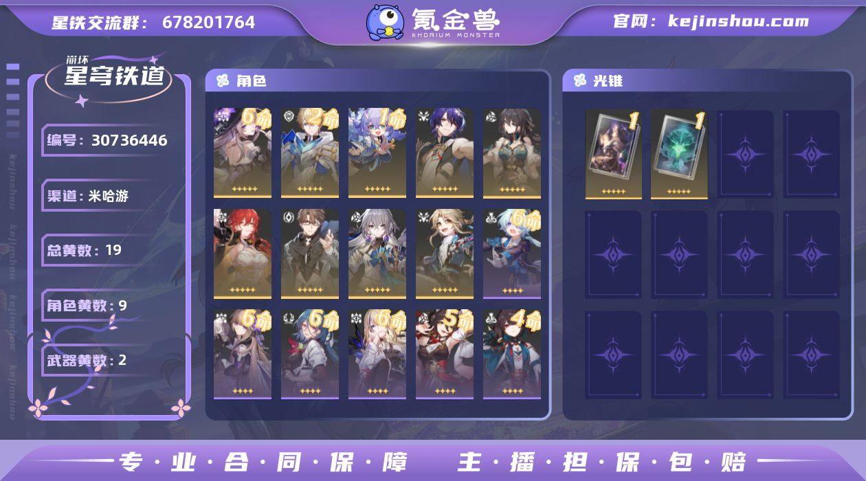 总黄数: 19 6命金色角色: 6命大黑塔 2命金色角色: 2命杰帕德 1命金色角色: 1命白露 0命金色角色: 0命彦卿,0命姬子,0命瓦尔特,0命布洛妮娅,0命阮•梅,0命真理医生 精1武器: 精1不息的演算,精1向着不可追问处