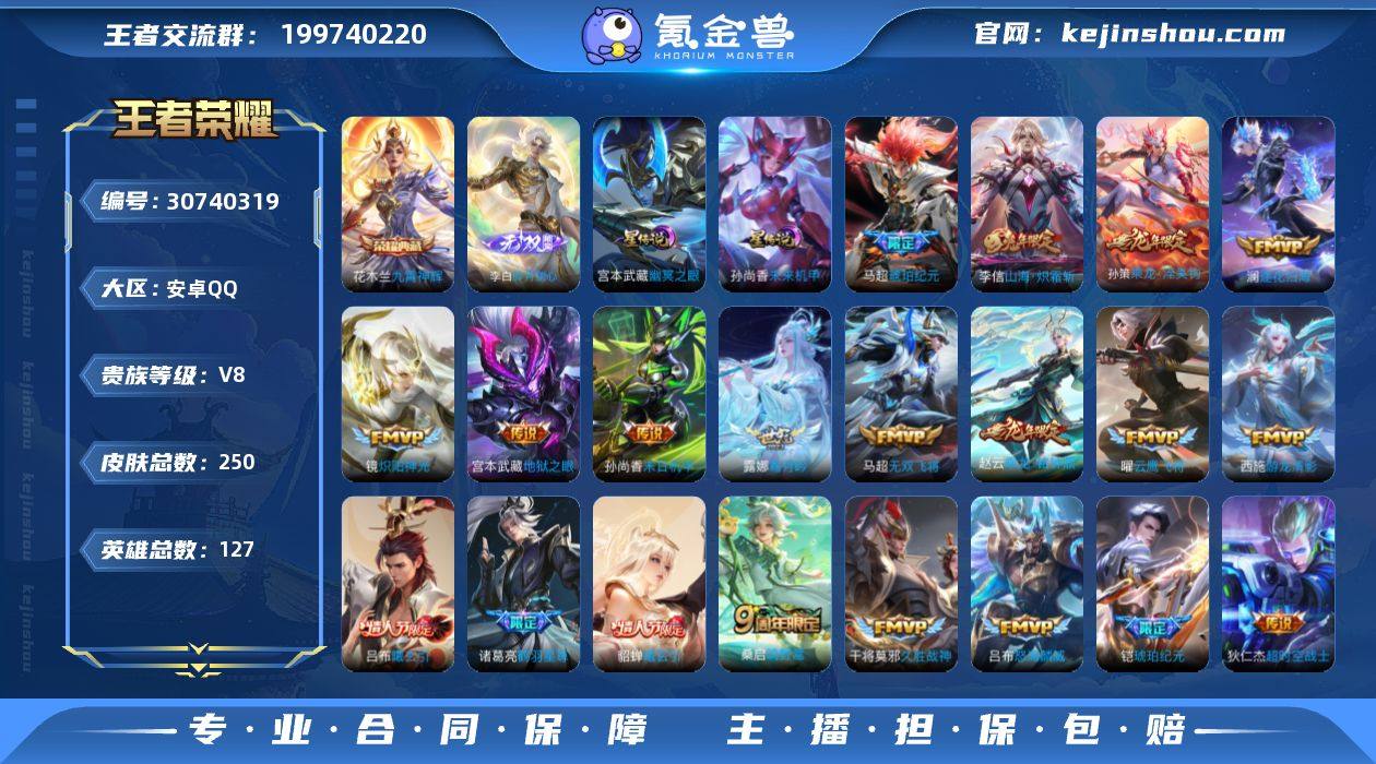 账号亮点:26按键 花木兰九霄神辉 李白碎月剑心 桑启鸣野蒿,吕布曦玄引,貂蝉曦玄引,孙策乘龙淬吴钩,赵云乘龙铭钟鼎,马超琥珀纪元,铠琥珀纪元,澜逐花归海,露娜霜月吟,诸葛亮鹤羽星尊,澜电玩雷克斯,李信山海炽霜斩,吕布怒海麟威,马超无双飞将,王昭君乞巧织情,西施游龙清影,周瑜音你心动,镜炽阳神光,虞姬启明星使,曜云鹰飞将,干将莫邪久胜战神,孙尚香末日机甲,宫本武藏地狱之眼,孙悟空地狱火,狄仁杰超时空战士585 【英雄全皮】:空空儿全皮 【荣耀典藏】:花木兰九霄神辉 【无双皮肤】:李白碎月剑心 【传说皮肤】:桑启鸣野蒿,吕布曦玄引,貂蝉曦玄引,孙策乘龙淬吴钩,赵云乘龙铭钟鼎,马超琥珀纪元,铠琥珀纪元,澜逐花归海,露娜霜月吟,诸葛亮鹤羽星尊,澜电玩雷克斯,李信山海炽霜斩,吕布怒海麟威,马超无双飞将,王昭君乞巧织情,西施游龙清影,周瑜音你心动,镜炽阳神光,虞姬启明星使,曜云鹰飞将,干将莫邪久胜战神,孙尚香末日机甲,宫本武藏地狱之眼,孙悟空地狱火,狄仁杰超时空战士 【限定皮肤】:姜子牙天穹之誓,杨戬破阵退雄兵,狄仁杰阴阳师,赵云皇家上将,扁鹊奇幻香踪,甄姬幽恒,马可波罗山海玄木吟,狄仁杰魔术师,项羽海滩派对,老夫子航海奇遇记,后羿辉光之辰,虞姬启明星使,杨戬潮玩骑兵,雅典娜黎明之约,诸葛亮鹤羽星尊,公孙离玉兔公主,裴擒虎擒涛扼浪,云中君纤云弄巧,李信山海炽霜斩,猪八戒猪悟能,上官婉儿梁祝,嫦娥拒霜思,嫦娥暖冬兔眠,西施玲珑珍味,鲁班大师探海日志,桑启海盐诗旅,戈娅驭风魔法,艾琳流音漫舞,司空震地狱燃心,阿古朵江河有灵,张良古海寻踪,蒙犽百解令,蒙恬荣光圣徽,高渐离燃音魔法,妲己灵卜魔法,鬼谷子天穹祈灯,李白碎月剑心,伽罗琥珀纪元,铠琥珀纪元,马超琥珀纪元,姬小满妄想食味,孙策乘龙淬吴钩,赵云乘龙...