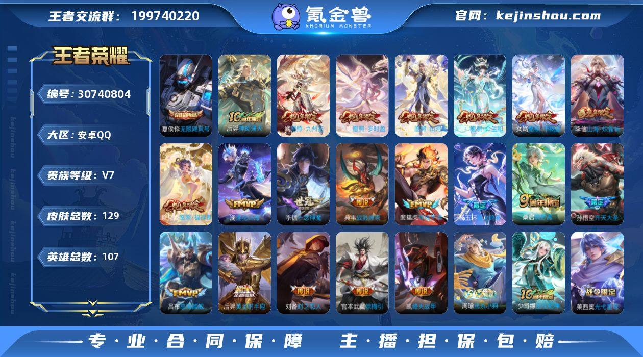 账号亮点:李信全皮 夏侯惇无限飓风号 后羿神树通天,杨玉环星之鸣奏,司空震愿照山河定,女娲愿照千秋盛,妲己愿照众生和,澜愿照九州拓,蔡文姬愿照福禄聚,虞姬愿照岁时盈,裴擒虎祥瑞亨通,桑启鸣野蒿,典韦战鼓燎原,澜逐花归海,宫本武藏惊梅引,孙悟空齐天大圣,李信山海炽霜斩,吕布怒海麟威,铠绛天战甲,李信一念神魔,刘备时之恋人,后羿黄金射手座366-5 【英雄全皮】:刘禅全皮,孙权全皮,李信全皮 【荣耀典藏】:夏侯惇无限飓风号 【传说皮肤】:后羿神树通天,杨玉环星之鸣奏,司空震愿照山河定,女娲愿照千秋盛,妲己愿照众生和,澜愿照九州拓,蔡文姬愿照福禄聚,虞姬愿照岁时盈,裴擒虎祥瑞亨通,桑启鸣野蒿,典韦战鼓燎原,澜逐花归海,宫本武藏惊梅引,孙悟空齐天大圣,李信山海炽霜斩,吕布怒海麟威,铠绛天战甲,李信一念神魔,刘备时之恋人,后羿黄金射手座 【限定皮肤】:狄仁杰阴阳师,赵云皇家上将,赵云引擎之心,马可波罗山海玄木吟,狄仁杰魔术师,项羽海滩派对,关羽百相守梦,韩信傲雪梅枪,孙悟空齐天大圣,裴擒虎李小龙,李信山海炽霜斩,盾山梦圆繁星,沈梦溪龙舞盛年,关羽决胜骁骑 【年限皮肤】:马可波罗山海玄木吟,李信山海炽霜斩 【史诗皮肤】:赵云皇家上将,赵云未来纪元,狄仁杰魔术师,宫本武藏鬼剑武藏,孙尚香水果甜心,妲己魅力维加斯,墨子金属风暴,吕布圣诞狂欢,刘禅绅士熊喵,曹操幽灵船长,吕布末日机甲,赵云引擎之心,夏侯惇乘风破浪,兰陵王暗隐猎兽者,亚瑟心灵战警,雅典娜冰冠公主,安琪拉心灵骇客,刘禅天才门将,程咬金功夫厨神,孙策猫狗日记,大乔猫狗日记,狄仁杰鹰眼统帅,裴擒虎李小龙,杨戬天秀启明,韩信傲雪梅枪,盾山梦圆繁星,马可波罗山海玄木吟,关羽百相守梦,刘禅电玩爆裂旋风,关羽决胜骁骑,廉颇撼地雄心,亚连破空之剑,百里守约...
