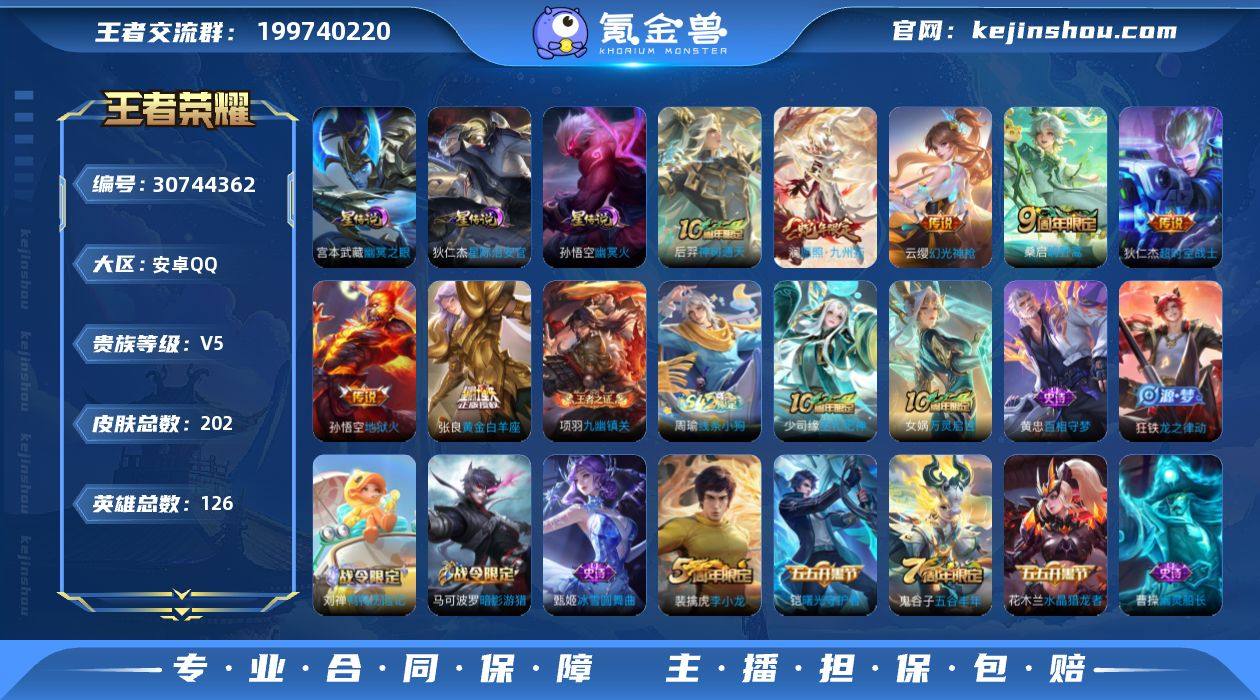 安卓Q-V5-至尊星耀III段位-126英雄-202皮肤-7传说-42史诗,对抗路38段, 【传说皮肤】:后羿神树通天,澜愿照九州拓,云缨幻光神枪,桑启鸣野蒿,张良黄金白羊座,孙悟空地狱火,狄仁杰超时空战士 【限定皮肤】:白起狰,姜子牙天穹之誓,杨戬破阵退雄兵,狄仁杰阴阳师,虞姬凯尔特女王,赵云皇家上将,孙尚香蔷薇恋人,庄周蜃楼王,高渐离玩趣恶龙,孙膑妖精王,扁鹊炼金王,夏侯惇朔风刀,甄姬游园惊梦,曹操烛龙,典韦穷奇,马可波罗暗影游猎,狄仁杰万华元夜,项羽海滩派对,老夫子醍醐杖,程咬金演武夺筹,李元芳云中旅人,钟馗驱傩正仪,太乙真人饕餮,鬼谷子原初探秘者,鬼谷子五谷丰年,百里玄策原初追逐者,弈星混沌棋,梦奇顽趣,明世隐疑决卦,裴擒虎李小龙,裴擒虎擒涛扼浪,狂铁御狮,盾山御銮,猪八戒西部大镖客,鲁班大师探海日志,桑启海盐诗旅,阿古朵江河有灵,张良古海寻踪,蒙恬荣光圣徽,鬼谷子天穹祈灯,沈梦溪龙舞盛年,刘邦剑破天穹,周瑜熔金海岸 【赛季限定】:庄周蜃楼王,孙膑妖精王,扁鹊炼金王,白起狰,夏侯惇朔风刀,曹操烛龙,典韦穷奇,狄仁杰万华元夜,老夫子醍醐杖,程咬金演武夺筹,张良古海寻踪,李元芳云中旅人,虞姬凯尔特女王,钟馗驱傩正仪,太乙真人饕餮,鬼谷子原初探秘者,百里玄策原初追逐者,弈星混沌棋,梦奇顽趣,明世隐疑决卦,裴擒虎擒涛扼浪,狂铁御狮,盾山御銮,鲁班大师探海日志,桑启海盐诗旅,鬼谷子天穹祈灯,蒙恬荣光圣徽,刘邦剑破天穹,姜子牙天穹之誓 【战令限定】:马可波罗暗影游猎,猪八戒西部大镖客 【史诗皮肤】:赵云皇家上将,貂蝉圣诞恋歌,甄姬冰雪圆舞曲,廉颇地狱岩魂,宫本武藏鬼剑武藏,孙尚香蔷薇恋人,孙尚香水果甜心,嬴政摇滚巨星,妲己魅力维加斯,墨子金属风暴,吕布圣诞狂欢,曹操幽灵船长,张飞乱世虎臣,花木兰水晶猎龙者,...