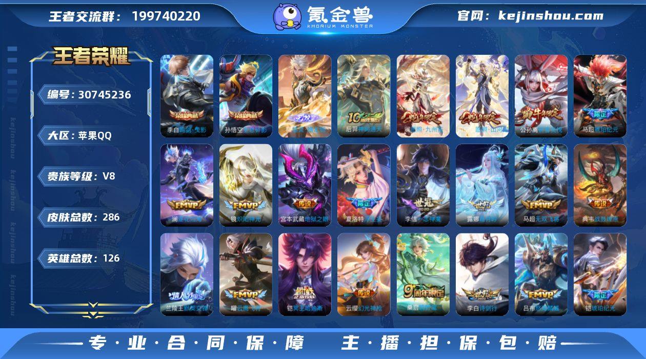 【WZ179067】苹果Q-V8-至尊星耀V段位-126英雄-286皮肤-2典藏皮肤-1无双-29传说-65史诗【英雄全皮】:苍全皮,司空震全皮,影全皮【荣耀典藏】:孙悟空全息碎影,李白鸣剑曳影【无双皮肤】:曜器灵螭龙剑【传说皮肤】:后羿神树通天,司空震愿照山河定,澜愿照九州拓,云缨幻光神枪,嬴政玄雷天君,桑启鸣野蒿,铠冥王哈迪斯,典韦战鼓燎原,马超琥珀纪元,铠琥珀纪元,澜逐花归海,露娜霜月吟,夏洛特浮生妄,吕布怒海麟威,李白诗剑行,马超无双飞将,赵云淬星耀世,兰陵王默契交锋,公孙离祈雪灵祝,铠绛天战甲,镜炽阳神光,虞姬启明星使,曜云鹰飞将,李信一念神魔,刘备时之恋人,花木兰冠军飞将,宫本武藏地狱之眼,孙悟空地狱火,狄仁杰超时空战士【限定皮肤】:铠冥王哈迪斯,狄仁杰阴阳师,赵云皇家上将,赵云引擎之心,墨子神迹守卫,嬴政优雅恋人,庄周高山流水,高渐离玩趣恶龙,钟无艳超时空战士,吕布猎兽之王,元歌云间偶戏,甄姬游园惊梦,甄姬落雪兰心,典韦岱宗,马可波罗暗影游猎,狄仁杰魔术师,狄仁杰万华元夜,达摩沙漠行僧,项羽海滩派对,老夫子醍醐杖,老夫子航海奇遇记,貂蝉逐梦之音,程咬金演武夺筹,韩信傲雪梅枪,兰陵王默契交锋,兰陵王金庭之子,亚瑟潮玩骑士王,孙悟空孙行者,后羿圣弓游侠,李元芳云中旅人,虞姬启明星使,钟馗驱傩正仪,杨戬潮玩骑兵,女娲朔望之晖,干将莫邪真爱魔法,雅典娜单词大作战,鬼谷子原初探秘者,鬼谷子五谷丰年,铠青龙志,苏烈千军破阵,公孙离祈雪灵祝,沈梦溪大漠名商,明世隐疑决卦,裴擒虎李小龙,裴擒虎擒涛扼浪,云中君纤云弄巧,猪八戒西部大镖客,上官婉儿梁祝,西施玲珑珍味,蒙犽狂想玩偶喵,鲁班大师探海日志,桑启海盐诗旅,夏洛特浮生妄,戈娅驭风魔法,艾琳流音漫舞,赵怀真鹤归松栖,司空震地狱燃心,阿古朵江河有灵,张良古海寻...