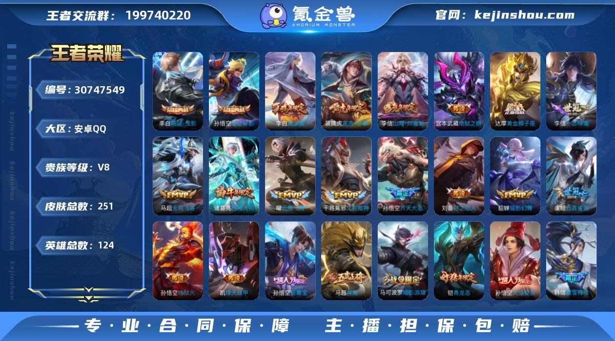 安卓Q-V8-至尊星耀IV段位-128英雄-300皮肤-1典藏皮肤-15传说-65史诗 【英雄全皮】:孙权全皮 【荣耀典藏】:虞姬神鉴启示录 【传说皮肤】:杨戬纵目迁山,后羿神树通天,妲己愿照众生和,澜愿照九州拓,孙尚香乘龙问璇玑,马超无双飞将,李元芳飞鸢探春,诸葛亮时雨天司,虞姬启明星使,孙悟空零号赤焰,李信一念神魔,伽罗太华,百里玄策白虎志,吕布天魔缭乱,狄仁杰超时空战士 【限定皮肤】:狄仁杰阴阳师,虞姬凯尔特女王,赵云皇家上将,赵云百木心枪,嬴政白昼王子,孙尚香蔷薇恋人,阿轲迷踪丽影,孙膑妖精王,孙膑天狼运算者,扁鹊炼金王,白起夜都怪侠,芈月重明,芈月白晶晶,吕布天魔缭乱,吕布猎兽之王,周瑜赤莲之焰,元歌云间偶戏,元歌无心,夏侯惇朔风刀,曹操烛龙,典韦穷奇,典韦岱宗,狄仁杰魔术师,狄仁杰万华元夜,达摩沙漠行僧,项羽海滩派对,老夫子醍醐杖,关羽冰锋战神,程咬金演武夺筹,刘邦夺宝奇兵,韩信傲雪梅枪,兰陵王驯魔猎人,兰陵王金庭之子,亚瑟潮玩骑士王,孙悟空至尊宝,孙悟空零号赤焰,牛魔御旌,后羿如梦令,李元芳银河之约,李元芳云中旅人,虞姬启明星使,钟馗驱傩正仪,杨玉环遇见飞天,干将莫邪胡桃夹子,雅典娜单词大作战,蔡文姬繁星吟游,鬼谷子原初探秘者,诸葛亮时雨天司,黄忠烈魂,铠青龙志,百里玄策白虎志,弈星混沌棋,沈梦溪星空之诺,沈梦溪大漠名商,明世隐疑决卦,明世隐吟游魔法,裴擒虎李小龙,裴擒虎擒涛扼浪,狂铁御狮,米莱狄御霄,云中君纤云弄巧,伽罗太华,盾山御銮,上官婉儿梁祝,上官婉儿神器万象笔,西施玲珑珍味,蒙犽狂想玩偶喵,鲁班大师探海日志,桑启海盐诗旅,艾琳女武神,高渐离燃音魔法,妲己灵卜魔法,鬼谷子天穹祈灯,孙尚香乘龙问璇玑,沈梦溪龙舞盛年,鲁班七号蔬乡物语,李元芳蔬乡物语,刘邦剑破天穹,程咬金群星魔术团,...