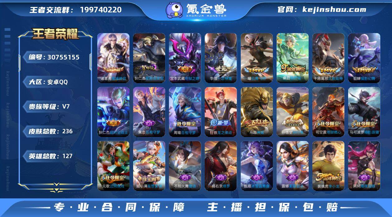 安卓Q-V5-尊贵铂金IV段位-127英雄-230皮肤-7传说-65史诗【英雄全皮】:狂铁全皮【传说皮肤】:桑启鸣野蒿,张飞百相守梦,李信山海炽霜斩,裴擒虎寅虎赤拳,孙尚香异界灵契,诸葛亮时雨天司,后羿黄金射手座【限定皮肤】:狄仁杰阴阳师,廉颇寅虎御盾,赵云皇家上将,墨子神迹守卫,孙尚香蔷薇恋人,孙尚香异界灵契,鲁班七号狮舞东方,阿轲迷踪丽影,扁鹊奇幻香踪,芈月白晶晶,吕布猎兽之王,周瑜赤莲之焰,元歌云间偶戏,元歌无心,夏侯惇朔风刀,甄姬女儿国国王,典韦穷奇,典韦蓝屏警告,马可波罗暗影游猎,狄仁杰魔术师,狄仁杰万华元夜,达摩沙漠行僧,项羽海滩派对,老夫子醍醐杖,老夫子航海奇遇记,关羽百相守梦,程咬金演武夺筹,刘邦夺宝奇兵,韩信傲雪梅枪,王昭君午后时光,兰陵王驯魔猎人,兰陵王金庭之子,花木兰青春决赛季,亚瑟潮玩骑士王,牛魔御旌,后羿如梦令,刘备百相守梦,张飞百相守梦,李元芳银河之约,李元芳云中旅人,钟馗神迹守卫,钟馗驱傩正仪,杨玉环遇见飞天,杨玉环寅虎心曲,杨戬潮玩骑兵,女娲朔望之晖,干将莫邪胡桃夹子,蔡文姬繁星吟游,鬼谷子原初探秘者,鬼谷子五谷丰年,诸葛亮时雨天司,苏烈千军破阵,弈星混沌棋,沈梦溪星空之诺,沈梦溪大漠名商,明世隐疑决卦,裴擒虎李小龙,裴擒虎寅虎赤拳,裴擒虎擒涛扼浪,狂铁御狮,狂铁电玩高手,米莱狄御霄,云中君纤云弄巧,李信山海炽霜斩,盾山御銮,猪八戒西部大镖客,上官婉儿梁祝,嫦娥拒霜思,嫦娥暖冬兔眠,鲁班大师探海日志,镜匿光追影者,桑启海盐诗旅,暃星界游侠,阿古朵江河有灵,张良古海寻踪,高渐离燃音魔法,妲己灵卜魔法,鬼谷子天穹祈灯【年限皮肤】:诸葛亮时雨天司,裴擒虎寅虎赤拳,廉颇寅虎御盾,杨玉环寅虎心曲,李信山海炽霜斩【赛季限定】:典韦穷奇,狂铁御狮,米莱狄御霄,牛魔御旌,盾山御銮...