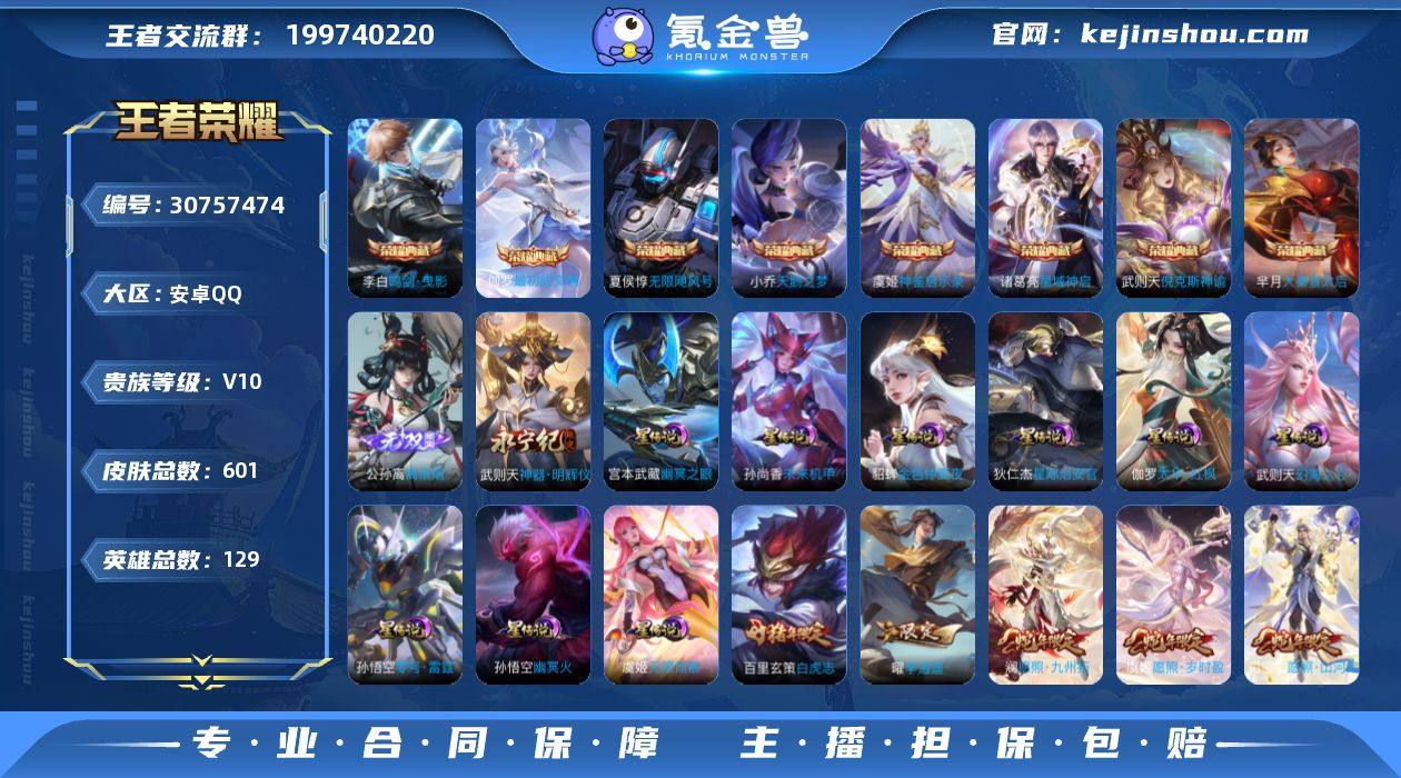 可换绑【特价V10精品号·赵云全皮·老虎全皮·生肖限定38个·6典藏含武则天英雄·小乔李白妲己3无双·3珍品江户川柯南怪盗基德·路在脚下天幕·2小兵】幸运值276 21按键 8星传说,1天幕,2小兵,947戳戳,26王者印记,满级铭文,可二次KK9006,苹果Q-V10-630皮肤-5典藏皮肤-1典藏英雄-3无双-3珍品传说-102传说-224史诗【英雄全皮】:小乔全皮,赵云全皮,阿轲全皮,项羽全皮,老夫子全皮,孙权全皮,娜可露露全皮,橘右京全皮,亚瑟全皮,张飞全皮,女娲全皮,哪吒全皮,雅典娜全皮,东皇太一全皮,百里玄策全皮,百里守约全皮,沈梦溪全皮,裴擒虎全皮,狂铁全皮,米莱狄全皮,盾山全皮,猪八戒全皮,马超全皮,敖隐全皮,鲁班大师全皮,蒙恬全皮,阿古朵全皮,夏洛特全皮,司空震全皮,金蝉全皮,莱西奥全皮,戈娅全皮,空空儿全皮,影全皮【荣耀典藏】:武则天英雄,武则天倪克斯神谕,夏侯惇无限飓风号,小乔天鹅之梦,孙尚香杀手不太冷,芈月大秦宣太后【无双皮肤】:妲己青丘九尾,李白碎月剑心,小乔时之魔女【珍品传说】:马可波罗怪盗基德,鲁班七号江户川柯南,张飞兔狲蓬尾【小兵皮肤】:小兵侦探大作战,小兵大耳狗甜茶会【天幕】:路在脚下天幕【星元皮肤】:貂蝉金色仲夏夜,宫本武藏幽冥之眼,孙悟空幽冥火,武则天幻海之心,孙尚香未来机甲,孙悟空零号雷霆,狄仁杰星际治安官,鲁班七号寅虎焰心【传说皮肤】:马超神骥逐星野,杨戬纵目迁山,后羿神树通天,大司命死亡执政官,司空震愿照山河定,女娲愿照千秋盛,妲己愿照众生和,澜愿照九州拓,蔡文姬愿照福禄聚,虞姬愿照岁时盈,裴擒虎祥瑞亨通,王昭君映山客,桑启鸣野蒿,亚连落雪白狼,吕布曦玄引,貂蝉曦玄引,典韦战鼓燎原,孙尚香乘龙问璇玑,孙策乘龙淬吴钩,赵云乘龙铭钟鼎,马超琥珀纪元,铠琥珀纪元,艾琳觅芳踪,吕布遇见神鼓,宫本武藏惊...