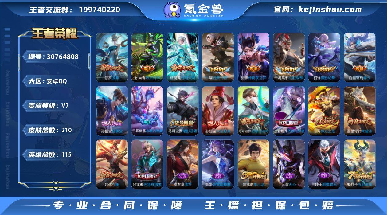 【商品标题】:安卓Q-V7-至尊星耀V段位-115英雄-210皮肤-0典藏-0无双-0珍品传说-8传说-56史诗 【内测皮肤】:孙尚香蔷薇恋人,艾琳女武神,狂铁特工战影 【传说皮肤】:孙尚香末日机甲,貂蝉仲夏夜之梦,干将莫邪久胜战神,貂蝉猫影幻舞,伽罗太华,曜云鹰飞将,诸葛亮时雨天司,百里守约碎云 【限定皮肤】:白起狰,狄仁杰阴阳师,赵云皇家上将,墨子神迹守卫,孙尚香蔷薇恋人,鲁班七号狮舞东方,庄周高山流水,芈月重明,周瑜赤莲之焰,元歌无心,夏侯惇朔风刀,曹操烛龙,典韦穷奇,马可波罗暗影游猎,马可波罗山海玄木吟,狄仁杰魔术师,狄仁杰万华元夜,达摩沙漠行僧,项羽海滩派对,老夫子醍醐杖,老夫子航海奇遇记,程咬金演武夺筹,韩信飞衡,兰陵王驯魔猎人,兰陵王金庭之子,孙悟空至尊宝,孙悟空大圣娶亲,牛魔御旌,后羿辉光之辰,后羿圣弓游侠,李元芳云中旅人,虞姬霸王别姬,钟馗神迹守卫,钟馗驱傩正仪,干将莫邪冰霜恋舞曲,干将莫邪真爱魔法,雅典娜黎明之约,蔡文姬繁星吟游,太乙真人饕餮,鬼谷子原初探秘者,鬼谷子五谷丰年,诸葛亮时雨天司,苏烈千军破阵,百里玄策原初追逐者,百里守约朱雀志,弈星混沌棋,沈梦溪大漠名商,明世隐疑决卦,裴擒虎天狼狩猎者,裴擒虎李小龙,裴擒虎擒涛扼浪,狂铁御狮,米莱狄御霄,云中君纤云弄巧,伽罗太华,盾山御銮,猪八戒西部大镖客,上官婉儿梁祝,上官婉儿天狼绘梦者,嫦娥拒霜思,蒙犽狂想玩偶喵,鲁班大师探海日志,桑启海盐诗旅,艾琳女武神,阿古朵江河有灵,张良古海寻踪,蒙恬荣光圣徽,鬼谷子天穹祈灯 【年限皮肤】:百里守约朱雀志,后羿辉光之辰,诸葛亮时雨天司,伽罗太华,韩信飞衡,马可波罗山海玄木吟 【赛季限定】:白起狰,芈月重明,夏侯惇朔风刀,曹操烛龙,典韦穷奇,狄仁杰万华元夜,达摩沙漠行僧,老夫子醍醐杖,程咬金演武夺...