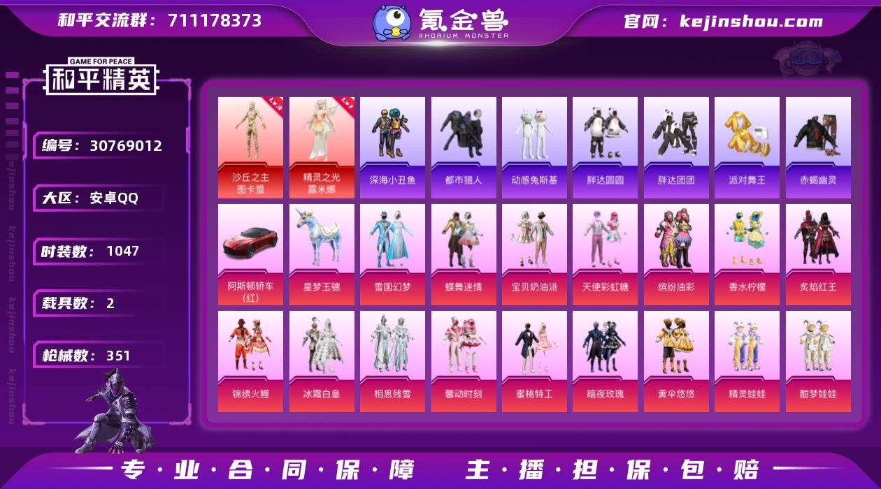 (可二次实名) 安卓Q-2红装6稀有2载具32粉装12特效枪(网络女神号绝世印记 3级露米娜图卡盟雪国猪妹小番茄马卡龙 纯白跃动 都市赤蝎金鞋子胖达头盔童趣迷兔头盔 粉熊包)36热门295套装351枪皮 137033热力值 22印记 历史传奇王牌16星 【2红装】 精灵之光-露米娜 (1级) 沙丘之主-图卡盟 (3级) 【6稀有】 赤蝎幽灵 AKM-百万伏特 都市猎人 浪漫天命 派对舞王 派对舞王(金靴子) 【2载具】 阿斯顿马丁S红色 星梦玉骢 【32粉装】 蝶舞迷情 严莉莉 小蓝 美琪 美雪 雪国幻梦 时空协奏·心弦 宝贝奶油派 天使彩虹糖 千金淑猫 星穹咏叹调 白勺歌姬 呆萌星弥 小可学妹 酣梦娃娃 精灵娃娃 缤纷油彩 纯珍童话 第五大道 锦绣火鲤 香水柠檬 冰霜白皇 星夜魔法师 炙焰红王 相思残雪 馨动时刻 彩虹甜喵 蜜桃特工 海盐物语 甜心娃娃 暗夜玫瑰 黄伞悠悠 【12特效枪】 M416-心之恋语 (7级) AKM-甜心宝贝 (7级) AKM-幽焰骑士 (3级) Kar98K-巳巳如意 (5级) DP-28-豹影疾电 (5级) M762-甜心娃娃 (5级) GROZA-精灵之光 (3级) GROZA-巴啦啦小魔仙 (6级) SCAR-L-童趣迷兔 (7级) UMP45-启明星 (5级) M416-风花雪月 (1级) 平底锅-林间仙鹿 (5级) 【36热门】 Mark.06 龟仙人 红熊茄茄 仓鼠灰灰 雪山精英 动感兔斯基 潮萌小黄鸭 爱崽白熊 鹰眼刺客 兔兔白日梦 激萌罗小黑 深海小丑鱼 胖达圆圆 胖达团团 梦起落英 暗夜契约 诡面顽熊 暗影哥特 团圆交子 瑞龙福将 纯白誓言 粉红小猪 豚鼠丹丹 狂沙舞者 漫步者 韶华初心 抹茶蜜豆 朱雀圣者 海洋之心 娴静芝兰 静谧青瓷 破蛋小黄鸡 M416-魔法学院 M762-瑞龙福将 MK47-林间仙鹿 Mini14-林间仙鹿 【4飞行器】 锦绣火鲤飞行器 相思残雪飞行器 星夜魔法师飞行翼 绚金瑰梦飞行器 【5头盔】 雪国精灵头盔 折纸暴龙头盔 火曜朱雀头盔 甜心宝贝头盔 心之恋语头盔 【9背包】 精灵迷巫背包 雪...