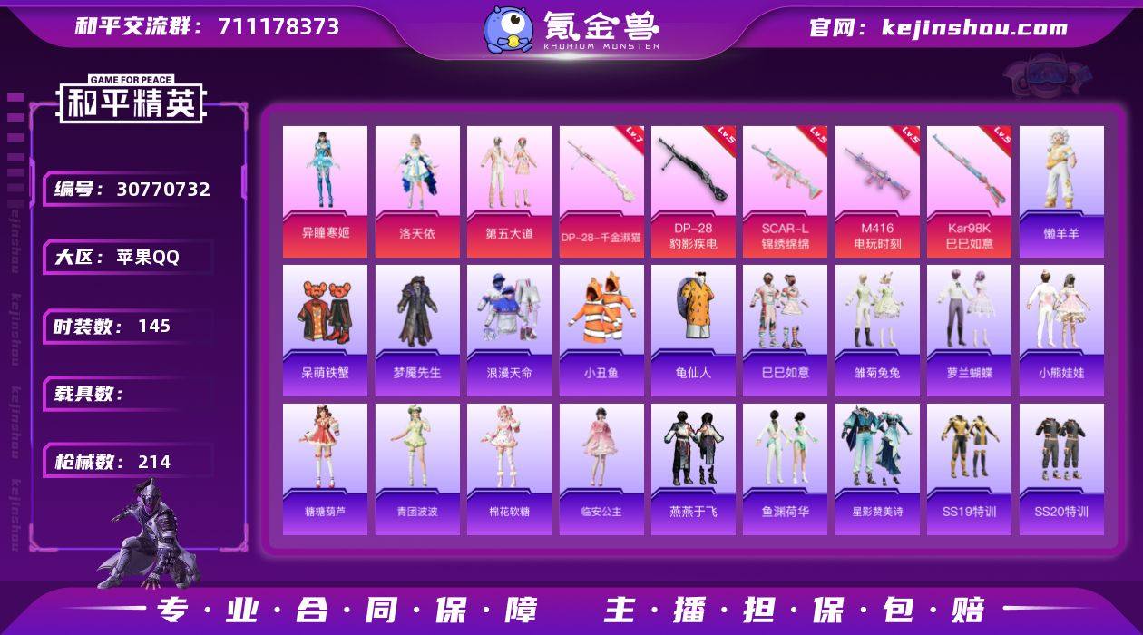 苹果 手Q-3粉装-5特效枪-0载具-1粉色飞行器-57140热力值-11王牌印记-145套装-214枪皮【热门品类】:套装-浪漫天命,套装-小丑鱼,套装-龟仙人【粉色套装】:角色-洛天依,粉装-第五大道,角色-异瞳寒姬【粉色枪皮等级】:SCAR-L-锦绣绵绵(五级),M416-电玩时刻(五级),Kar98K-巳巳如意(五级),DP-28-千金淑猫(七级),DP-28-豹影疾电(五级)【粉色枪皮】:SCAR-L-锦绣绵绵,M416-电玩时刻,Kar98K-巳巳如意,DP-28-千金淑猫,DP-28-豹影疾电【粉色降落伞】:环太平洋降落伞,暖熊萌萌降落伞,音爆索尼克降落伞,未来歌姬降落伞,蜜语绒猫降落伞,樱桃泡泡降落伞,雪月幻音降落伞,智耀战神降落伞,异瞳寒姬降落伞,炫彩糖果降落伞【稀有套装】:套装-龟仙人,套装-巳巳如意,套装-雪国风尚,套装-雏菊兔兔,套装-萝兰蝴蝶,套装-小熊娃娃,套装-糖糖葫芦,套装-青团波波,套装-棉花软糖,角色-临安公主,套装-燕燕于飞,套装-鱼渊荷华,套装-星影赞美诗,玩偶服-懒羊羊,套装-炫彩糖果【稀有枪皮】:AUG-冰晶雪宝,AKM-彩虹符号,AKM-破晓战魂,AKM-缤纷海域,AKM-霓虹街区,M16A4-幻世战舞者,M16A4-甜心亚梦,M16A4-千金淑猫,SCAR-L-玉兔迎春,SCAR-L-红色方程式,SCAR-L-黄金龙骨,M416-彩虹嘻嘻猴,M416-暗夜行者,M416-糯团青竹,M416-红色方程式,GROZA-影袭,GROZA-懵萌河马,GROZA-田园牧歌,AUG-耀粉歌者,AUG-绝对恒星,QBZ-未来歌姬,QBZ-飞驰魅影,M762-天降萌叽,M762-登顶巅峰,Mk47-妙红点点,G36C-懵萌河马,AC-VAL-天降萌叽,AC-VAL-快闪甜心,AC-VAL-甜心亚梦,蜜獾-天降萌叽,蜜獾-娇憨猪猪,UZI-啾咪啾咪,UZI-娇憨猪猪,UZI-影袭,UZI-红色方程式,UMP45-仲夏莫吉托,UMP45-蓝色火焰,UMP45-诡娃娃,UMP45-极意拳锋,Vector-焰鹰斗篷,Vector-治愈之星,Vector-田园牧歌,Vector-金玉无双,汤...