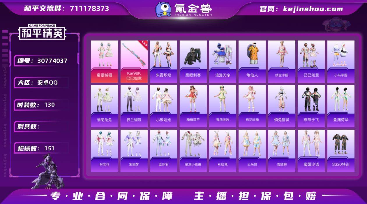 【mhp1080】安卓 手Q-1粉装-1特效枪-0载具-1粉色飞行器-40548热力值-9王牌印记-130套装-151枪皮 【热门品类】:套装-浪漫天命,套装-龟仙人 【粉色套装】:粉装-蜜语绒猫 【粉色枪皮等级】:Kar98K-巳巳如意(五级) 【粉色枪皮】:Kar98K-巳巳如意 【粉色降落伞】:猪猪侠降落伞,月影灵韵降落伞,彩虹独角兽降落伞,星穹咏叹调降落伞,荧海星豚降落伞,炫彩糖果降落伞 【稀有套装】:套装-龟仙人,套装-绒宝小鹅,套装-巳巳如意,套装-小鸟芋圆,套装-雪国风尚,套装-雏菊兔兔,套装-萝兰蝴蝶,套装-小熊娃娃,套装-糖糖葫芦,套装-青团波波,套装-棉花软糖,角色-俏兔智灵,套装-燕燕于飞,套装-鱼渊荷华,套装-粉恋花,套装-紫幽梦,套装-蓝冰羽,套装-星渊小夜曲,套装-彩虹兔,套装-云朵鹅,套装-雪绒豹,套装-蜜露汐语,套装-朱霞炽焰,套装-炫彩糖果 【稀有枪皮】:AKM-彩虹符号,AKM-春暖花开,AKM-破晓战魂,AKM-霓虹街区,AKM-龙的传人,M16A4-幻世战舞者,SCAR-L-玉兔迎春,M416-糯团青竹,M416-红色方程式,M416-蓝色火焰,GROZA-影袭,GROZA-春暖花开,AUG-天降萌叽,AUG-耀粉歌者,AUG-青春冒险家,M762-天降萌叽,M762-云朵鹅,AC-VAL-天降萌叽,AC-VAL-快闪甜心,蜜獾-天降萌叽,ARX-凌霄紫焰,UZI-啾咪啾咪,UZI-天降萌叽,UMP45-涂山之恋,Vector-焰鹰斗篷,Vector-生命誓言,汤姆逊-天降萌叽,汤姆逊-耀粉歌者,JS9-凌霄紫焰,P90-快闪甜心,P90-巳巳如意,Kar98K-彩虹符号,M24-幻彩电音,AWM-焰鹰斗篷,VSS-彩虹符号,Mini14-炫彩节奏,Mini14-绯穹魔姬,M417-惊鸿侠骨,M417-猪猪侠,MK20-H-快闪甜心,M200-惊鸿侠骨,SVD-云朵鹅,S686-生命誓言,S686-巳巳如意,S1897-暗夜鎏金,S1897-炫彩节奏,S1897-荧海星豚,S12K-玩趣呆呆,S12K-破晓战魂,S12K-幻世战舞者,DBS-焰鹰斗篷,DBS-第五大...