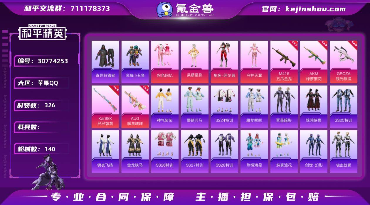 (可二次实名) 蜘蛛服-满级五爪-AKM-百万伏特-苹果Q-42702热力值 8王牌印记 历史超级王牌11星 82套装 140枪皮 【2稀有】 奇异狩猎者 AKM-百万伏特 【4粉装】 阿尔茜 守护天翼 呆萌星弥 粉色回忆 【5特效枪】 M416-五爪金龙 (7级) AKM-绿萝繁花 (5级) Kar98K-巳巳如意 (5级) AUG-暖羊咩咩 (5级) GROZA-镜光银凌 (5级) 【2飞行器】 炎氏战神飞行翼 黄族统领飞行器 【2热门】 龟仙人 深海小丑鱼 【1头盔】 百万伏特头盔 【1背包】 深海小丑鱼背包 营地ID:921296561 PX_1778742