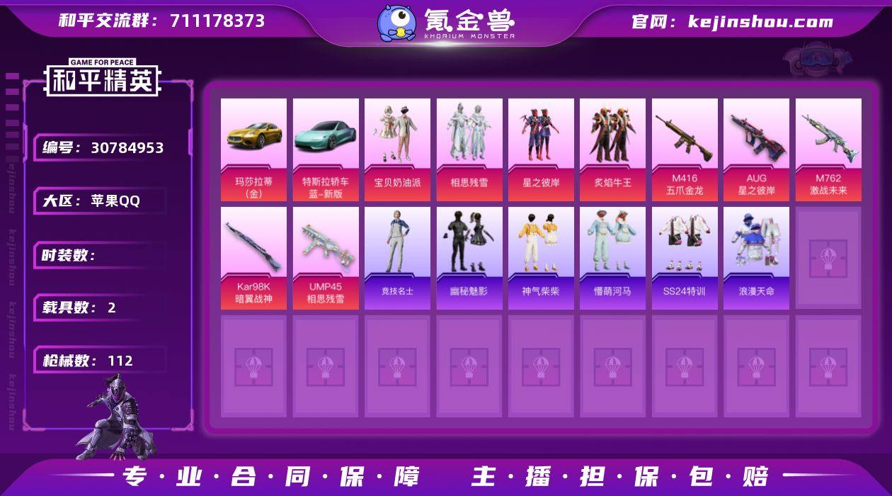 果Q【人脸可改】金玛莎 -4粉装-5特效枪-2载具-44062热力值-6印记-89套装-112枪皮 【2载具】玛莎拉蒂Ghibli(金) 特斯拉Roadster(水滴蓝) 【4粉装】宝贝奶油派套装 星