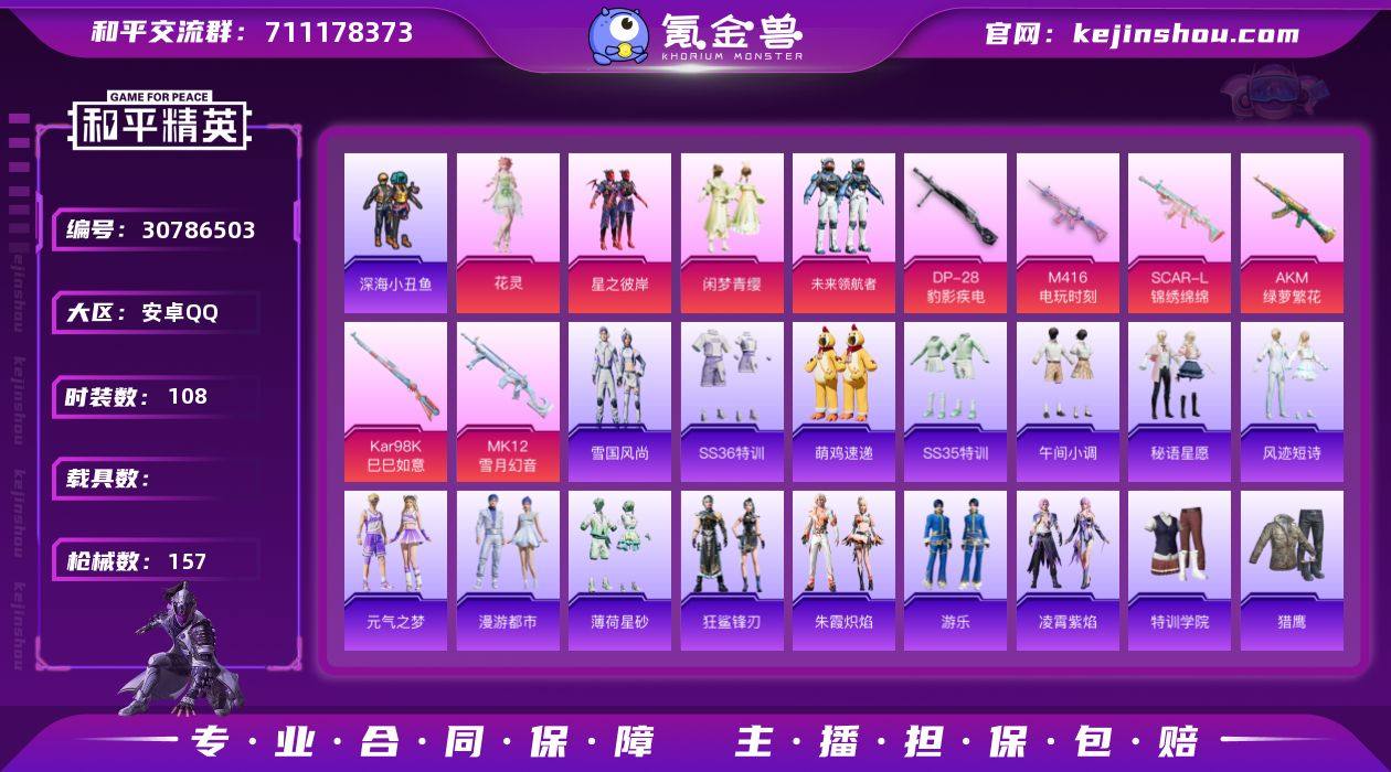 【0载具 6特效枪 4粉装 157枪皮 108套装】地铁号 满天赋 螳螂 深海小丑鱼 套装-深海小丑鱼,套装-星之彼岸,套装-闲梦青缨,角色-Mark.06,套装-未来领航者,角色-花灵M416-电玩时刻,SCAR-L-锦绣绵绵,AKM-绿萝繁花,Kar98K-巳巳如意,MK12-雪月幻音,DP-28-豹影疾电13分身,螳螂,卖崽青蛙,深海小丑鱼,编号:ZPDUA08