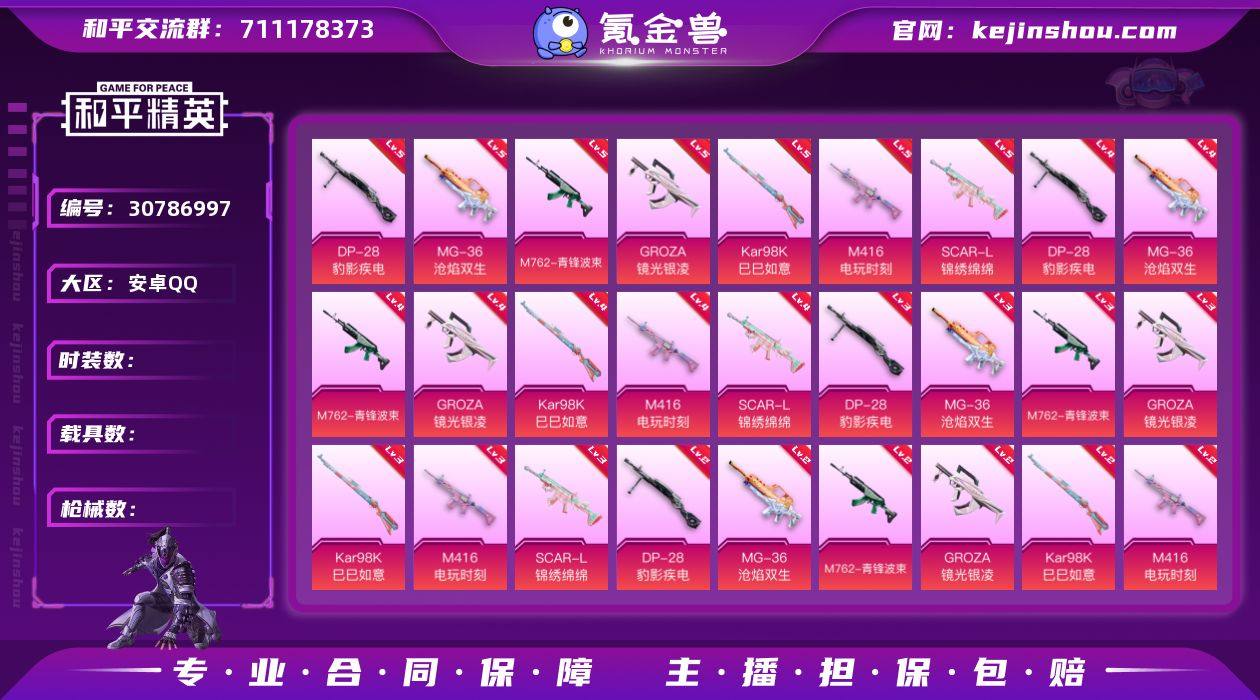 【新年特价出售】 【4粉装-12粉枪-0载具-1珍稀飞行器-133套装-240枪皮】热力值:66499 历史最高段位:荣耀皇冠Ⅱ Lv:57【稀有资产】角色-羊梦糖心/AUG-暖羊咩咩[5级]/M416-电玩时刻[5级]/套装-龟仙人/套装-星谷精灵/套装-圣穹绘梦/玩偶服-卖崽青蛙/玩偶服-懒羊羊/玩偶服-美羊羊/玩偶服-喜羊羊/角色-摩登魅猫/角色-临安公主/角色-时希公主 【粉色套装】角色-狂花道·不知火舞/角色-异瞳寒姬/角色-绯穹魔姬 【粉色枪皮】蜜獾-异瞳寒姬[7级]/PKM-江南烟雨[7级]/M762-青锋波束[5级]/SCAR-L-锦绣绵绵[5级]/AKM-绿萝繁花[5级]/GROZA-镜光银凌[5级]/Kar98K-巳巳如意[5级]/Mk14-甜梦熊击[5级]/DP-28-豹影疾电[5级]/MG-36-沧焰双生[5级] 【飞行器】炫彩糖果飞行器 【珍稀背包】荧海星豚背包(1级)/ 【珍稀头盔】荧海星豚头盔(1级)/