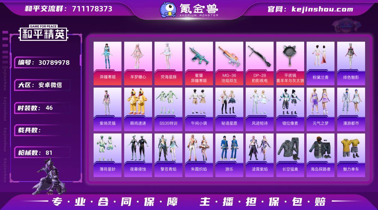 【0载具 4特效枪 3粉装 81枪皮 46套装】蜜獾-异瞳寒姬,平底锅-喜羊羊与灰太狼,角色-异瞳寒姬,角色-羊梦糖心,角色-荧海星豚,编号:JJVXY94