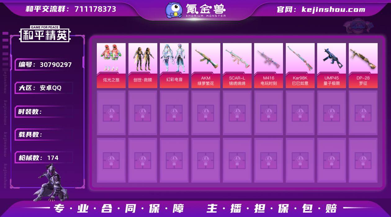 【0载具 6特效枪 3粉装 174枪皮 138套装】可二次 10印记 热力值5.0w 3粉6特2飞行器 地铁声望30级 浪漫天命 金耀舞者 军刀雅典娜 炫光之旅 老实芭蕉 创世·救赎 幻彩电音 AKM-绿萝繁花 SCAR-L-锦绣绵绵 M416-电玩时刻 Kar98K-巳巳如意 UMP45-量子极限 DP-28-罗征 霓虹漫游飞行器 祥瑞锦鲤飞行器 cd-1 t7-12 b47-7,编号:KXXQW20