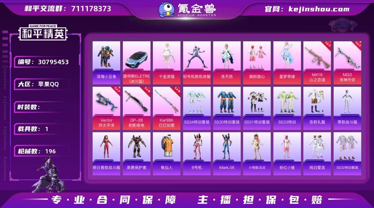 【AZH2952】安卓 手Q【巡查衣洛天依 深海小丑鱼浪漫天命 满级甜心宝贝AKM 满级心之恋语M416 满级环太平洋Vector 满级橘柚倾心AWM 2载具】7粉装-14特效枪-2载具-4粉色飞行器-93470热力值-20王牌印记-180套装-267枪皮 【热门品类】:绝对防御上衣,套装-浪漫天命,套装-深海小丑鱼,套装-小丑鱼,套装-龟仙人,套装-粉红小猪 【粉色套装】:粉装-天使彩虹糖,角色-洛天依,粉装-蓝莓炮弹,粉装-仲夏莫吉托,角色-烟云彩露,角色-虹云熊熊,角色-虎痴许褚 【粉色枪皮等级】:AKM-甜心宝贝(七级),M16A4-垂柳戏鸭(六级),SCAR-L-锦绣绵绵(五级),M416-心之恋语(七级),AUG-暖羊咩咩(五级),ACE32-萌骑漫游(五级),Vector-环太平洋(七级),AKS-74U-森灵之息(三级),Kar98K-巳巳如意(五级),M24-虎痴许褚(二级),AWM-橘柚倾心(七级),Mk14-福马献瑞(五级),AMR-智耀战神(五级) 【粉色载具】:玛莎拉蒂Ghibli(蓝),合金龙骨(蓝) 【粉色枪皮】:AKM-甜心宝贝,M16A4-垂柳戏鸭,SCAR-L-锦绣绵绵,M416-心之恋语,AUG-暖羊咩咩,ACE32-萌骑漫游,Vector-环太平洋,AKS-74U-森灵之息,Kar98K-暗翼战神,Kar98K-巳巳如意,M24-虎痴许褚,AWM-橘柚倾心,Mk14-福马献瑞,AMR-智耀战神 【粉色飞行器】:香车宝马飞行器,炫彩糖果飞行器,幻海精灵飞行器 【粉色降落伞】:甜心宝贝降落伞,春暖花开降落伞,梦幻火箭降落伞,神秘黑猫降落伞,暗翼战神降落伞,星之彼岸降落伞,暗夜玫瑰降落伞,庄周梦蝶降落伞,星夜魔法师降落伞,环太平洋降落伞,旋转彩虹降落伞,仲夏莫吉托降落伞,飒粉甜心降落伞,萌物绒绒降落伞,沙丘之主降落伞,江南烟雨降落伞,BEARBRICK降落伞,精灵之光降落伞,星穹咏叹调降落伞,幻彩电音降落伞,异瞳寒姬降落伞,炫彩糖果降落伞,旋星之夜降落伞,虹云熊熊降落伞,虎痴许褚降落伞 【稀有套装】:套...