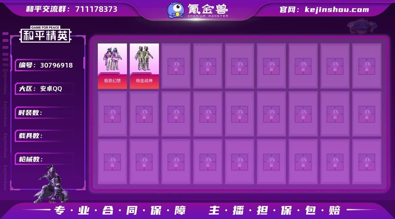 【ky60】安卓 手Q-10粉装-9特效枪-2载具-5粉色飞行器-63063热力值-13王牌印记-137套装-199枪皮 【热门品类】:粉装-梦幻火箭,粉装-缤纷油彩,套装-浪漫天命,套装-奇异狩猎者,套装-龟仙人,套装-暗影哥特,套装-红熊茄茄 【粉色套装】:粉装-梦幻火箭,粉装-缤纷油彩,粉装-放客神游,粉装-莲影清波,角色-美琪,角色-女娲灵识,粉装-雪月幻音,角色-幻海仙踪,角色-罗征,角色-绯穹魔姬 【粉色枪皮等级】:AKM-星际浪客(六级),M416-至情至圣(九级),GROZA-旋转彩虹(五级),GROZA-镜光银凌(五级),AUG-暖羊咩咩(五级),Kar98K-巳巳如意(五级),MK20-H-海螺星光(七级),MK12-雪月幻音(一级),DP-28-豹影疾电(五级) 【粉色载具】:玛莎拉蒂Quattroporte(夜幕蓝),合金龙骨(蓝) 【粉色枪皮】:AKM-星际浪客,M416-至情至圣,GROZA-旋转彩虹,GROZA-镜光银凌,AUG-暖羊咩咩,Kar98K-巳巳如意,MK20-H-海螺星光,MK12-雪月幻音,DP-28-豹影疾电 【粉色飞行器】:梦幻火箭飞行器,齐天大圣飞行器,星夜魔法师飞行翼,星空武士飞行器 【粉色降落伞】:洛神天依降落伞,炙焰牛王降落伞,星夜魔法师降落伞,歌者泠鸢降落伞,第五大道降落伞,蜜语绒猫降落伞,创世·救赎降落伞,千金淑猫降落伞,月影灵韵降落伞,鬼刀降落伞,雪月幻音降落伞,智耀战神降落伞,幻海仙踪降落伞,幻彩电音降落伞,绯穹魔姬降落伞,异瞳寒姬降落伞,炫彩糖果降落伞 【稀有套装】:套装-龟仙人,套装-巳巳如意,套装-炫彩糖果,角色-达芬奇,角色-俏兔智灵,套装-燕燕于飞,套装-鱼渊荷华,套装-晶辉守护,角色-冰晶湖光,套装-粉恋花,套装-紫幽梦,套装-蓝冰羽,角色-幽澜祭司,角色-鲛海歌灵,套装-星渊小夜曲,角色-时希公主,套装-朱霞炽焰,套装-凌霄紫焰,角色-绯色魅影 【稀有枪皮】:AUG-冰晶雪宝,AKM-生命誓言,AKM-缤纷海域,...
