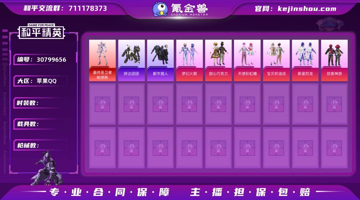 安卓 手Q-11粉装-2特效枪-1载具-56046热力值-12印记-132套装-178枪皮 1卓越印记 【1载具】合金龙骨(蓝) 【11粉装】蜜桃特工套装 呆萌星弥角色 花间之火套装 梦幻火箭套装 飒粉甜心套装 天使彩虹糖套装 宝贝奶油派套装 猪猪侠玩偶服 零号机款机体服 幻影战神套装 黄族统领套装 【2特效枪】AKM-甜心宝贝-7级 M416-风花雪月-6级 【4飞行器】镜光幻境飞行翼 甜蜜誓约飞行器 光之冒险尾迹 空岛之星尾迹 【47降落伞】海盐豹豹降落伞 SS28王牌降落伞 SS23王牌降落伞 寒蝎幽灵降落伞 懵萌河马降落伞 SS24王牌降落伞 月下萌萌兔降落伞 SS27王牌降落伞 甜心宝贝降落伞 第五大道降落伞 长相守降落伞 紫菱降落伞 瑞龙福将降落伞 妙红点点降落伞 钢铁雄心降落伞 飞驰魅影降落伞 异彩先驱降落伞 都市猎人降落伞 青羽降落伞 天涯共此时降落伞 SS22王牌降落伞 普通降落伞 化学天才降落伞 和平使命降落伞 白昼之火降落伞 夏日倾情降落伞 黄族统领降落伞 甜蜜誓约降落伞 SS29王牌降落伞 娇憨猪猪降落伞 海域冒险降落伞 寂夜之火降落伞 洛神天依降落伞 SS17王牌降落伞 SS21王牌降落伞 萌趣颜团子降落伞 绯红秘境降落伞 SS26王牌降落伞 快闪甜心降落伞 干得PEL亮降落伞 幻影战神降落伞 田园牧歌降落伞 治愈之星降落伞 冰河战士降落伞 未来战士降落伞 猪猪侠降落伞 蓝海之火降落伞 【9头盔】幻影战神头饰 黄族统领发饰 宝贝奶油派发饰 猪猪侠头套 花间之火发饰 飒粉甜心发饰 梦幻火箭发饰 蜜桃特工发饰 天使彩虹糖发饰 【0僚机】 【53背包】海盐豹豹背包(3级) 海盐豹豹背包(2级) 精灵梦叶罗丽背包(3级) 百万伏特背包(3级) 懵萌河马背包(3级) 猪猪侠背包(3级) 白勺歌姬背包(3级) 幻影战神背包(3级) 天降萌叽背包(3级) 龟仙人龟壳背包(3级) 龟仙人龟壳背包(2级) 懵萌河马背包(2级) 萌趣颜团子背包(3级) 甜心宝贝背包(3级) 蝶变背...