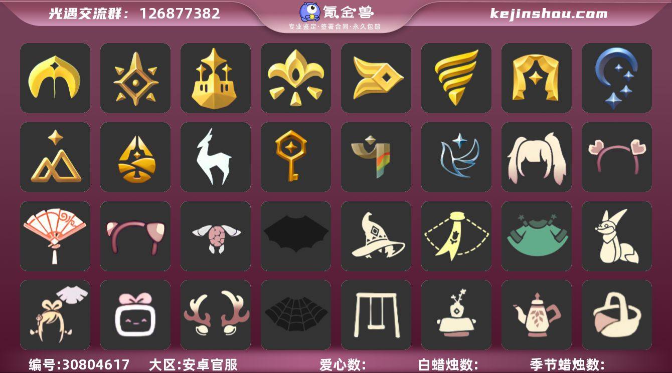 账号类型: 手机账号 季节已毕业: 圣岛季,预言季,梦想季,风行季,潜海季,表演季,集结季,夜行季,拾光季,归巢季,九色鹿季,筑巢季,彩染季,青鸟季 完成地图: 晨岛,云野,雨林,霞谷,暮土,禁阁,全图毕业 珍稀物品: 阿努比斯(狗头),白枭 礼包: 蝙蝠套,巫师,围巾,星球斗,小狐狸,绊爱,大铁头,鹿角,蜘蛛斗,秋千,茶桌,茶壶,餐桌,白绒金,瑞雪,女巫裙,小船,吉他,彩虹帽,雪花球,绒帽,橘子,贝壳,黄伞,南瓜,雪花,tgc,新年裤,四叶草,新年耳钉,创始人,海龟斗篷,献瑞折扇礼包,渐变双马尾发型礼包,心心相印发饰礼包,粽子发饰礼包 裤子: 武士裤,背带裤,白棉裤,搓澡巾 面具: 黄鼠狼,红狐狸,阿努比斯 面饰: 红耳机 项链: 围巾 发型: 蝴蝶结,正太,樱花,公主头,虚荣 头饰: 花环 斗篷: 白金,红金,花瓣斗篷,荧蓝斗篷 配饰: 雨伞,排箫,高音钢琴,吉他,笛子,大铃铛乐器,乐器 亮点: 有青鸟季季卡