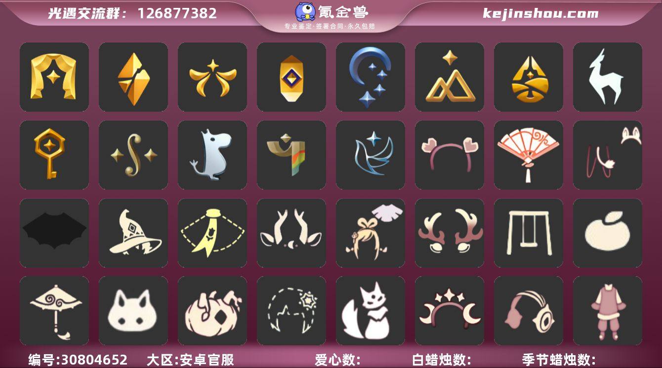 【编号Z8105】 【支持分期】 蜡烛数量:31 爱心:39 翼数量:160 身高:2.18-14.18/2.18 账号类型: 手机账号 季节已毕业: 表演季,破晓季,欧若拉季,夜行季,追忆季,拾光季,归巢季,九色鹿季,筑巢季,二重奏季,姆明季,彩染季,青鸟季 完成地图: 晨岛,雨林,霞谷,墓土 珍稀物品: 白枭,透明蝶翼斗 礼包: 蝙蝠套,巫师,围巾,九色鹿角,绊爱,鹿角,秋千,橘子,红伞,兔子,南瓜,雪花,猫背饰,星月头饰,彩虹耳机,新年裤,奥利奥,四叶草,新年耳钉,海蓝波浪发型,线框斗,姆明饰品套装,献瑞折扇礼包,心心相印发饰礼包,冥龙南瓜 裤子: 武士裤,背带裤,白棉裤,搓澡巾 面具: 黄鼠狼,红狐狸 面饰: 红耳机 项链: 围巾 发型: 蝴蝶结,正太,樱花,公主头,虚荣,猫耳 头饰: 花环 斗篷: 白金,红金,白鸟斗,花瓣斗篷,荧蓝斗篷 配饰: 雨伞,高音钢琴,吉他,笛子,大铃铛乐器 亮点: 重塑药水181