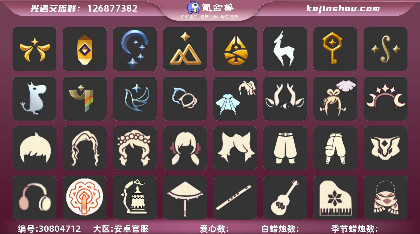 【编号Z8228】 【支持分期】 蜡烛数量:42 爱心:4 翼数量:175 身高:1.27-13.27/1.29 账号类型: 手机账号 季节已毕业: 欧若拉季,夜行季,追忆季,拾光季,归巢季,九色鹿季,筑巢季,二重奏季,姆明季,彩染季,青鸟季,双星季 完成地图: 晨岛,霞谷 珍稀物品: 透明蝶翼斗 礼包: 九色鹿角,绊爱,星月头饰,青衫落拓礼包,冥龙南瓜 裤子: 武士裤,搓澡巾 面具: 黄鼠狼 面饰: 红耳机 项链: 围巾 发型: 正太,樱花,虚荣,猫耳 头饰: 花环 斗篷: 白金,红金 配饰: 雨伞,高音钢琴,吉他,笛子,大铃铛乐器,乐器 亮点: 重塑药水179