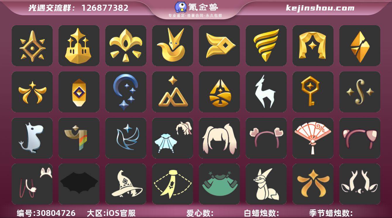 【编号Z7898】 蜡烛数量:581 爱心:99 翼数量:165 账号类型: 手机账号 季节已毕业: 预言季,梦想季,小王子季,风行季,潜海季,表演季,破晓季,欧若拉季,集结季,夜行季,追忆季,拾光季,归巢季,九色鹿季,筑巢季,二重奏季,姆明季,彩染季,青鸟季 完成地图: 晨岛,云野,雨林,霞谷,墓土,禁阁,全图毕业 珍稀物品: 阿努比斯(狗头),白枭,透明蝶翼斗,玫瑰花 礼包: 蝙蝠套,巫师,围巾,星球斗,小狐狸,欧若拉之翼,九色鹿角,莲花斗,大耳狗装扮,绊爱,大铁头,鹿角,荷叶伞,牛仔裤,兔子鞋,运动鞋,白绒金,福娃,灯笼,风之旅人,人声乐器,奔跑发型,鲤鱼套,雪花球,橘子,粽叶,贝壳,黄伞,红伞,兔子,南瓜,雪花,鲤鱼,水母,猫背饰,星月头饰,彩虹耳钉,彩虹耳机,新年裤,蝴蝶结,魔法棒,奥利奥,四叶草,暗彩装扮,向日葵套,拖鞋,爱心眼镜,透明蛛丝,浪漫流星斗,飞鸟纸伞,满月耳坠,姆明饰品套装,献瑞折扇礼包,渐变双马尾发型礼包,心心相印发饰礼包,粽子发饰礼包,青衫落拓礼包,冥龙南瓜 裤子: 武士裤,背带裤,白棉裤,搓澡巾 面具: 黄鼠狼,红狐狸,阿努比斯 面饰: 红耳机 项链: 围巾 发型: 蝴蝶结,正太,樱花,公主头,虚荣,猫耳 头饰: 花环 斗篷: 白金,红金,白鸟斗,花瓣斗篷,荧蓝斗篷 配饰: 雨伞,排箫,高音钢琴,吉他,笛子,大铃铛乐器,乐器 亮点: 重塑药水97,有青鸟季季卡