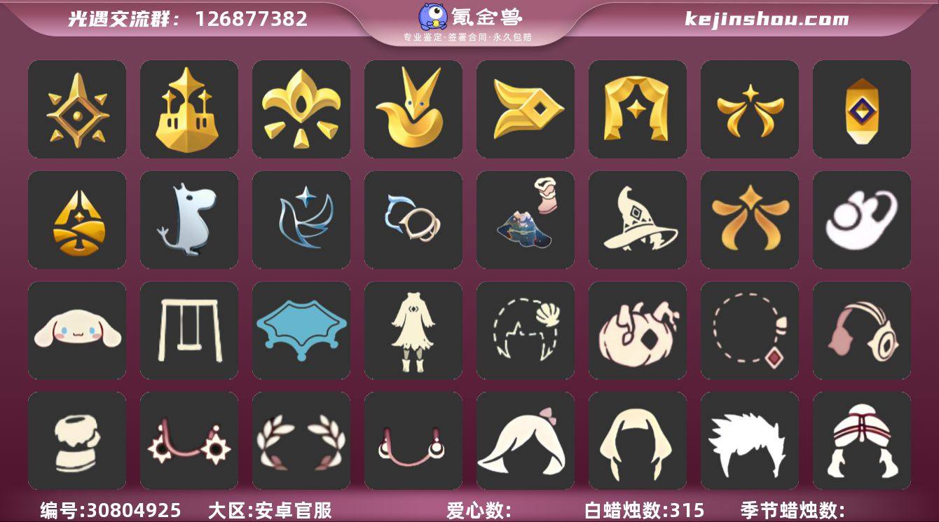 15季9翼欧若拉之翼白枭衔福献瑞粽叶斗篷小王子围巾暗彩装扮星月头冠祥云纸伞花憩茶桌详情看图,价格可刀 资源:蜡烛 223 爱心90 红烛1 翼9 已毕业地图:全图毕业 毕业季节: 集结季 小王子季 表演季 破晓季 拾光季 归巢季 九色鹿季 筑巢季 二重奏季 彩染季 青鸟季 双星季 梦想季半毕业 风行季季卡 迁徙季季卡 稀有礼包: 小王子围巾 欧若拉之翼 新春福娃 蝙蝠套 衔福献瑞 粽叶斗篷 青衫落拓 祥云纸伞 献瑞折扇 花憩茶桌 小船 兔子拖鞋 影院套餐 友好帽子 宝藏猎人 连衣裙 祥云服饰 兔子头 悦动跑鞋 暗彩装扮 海洋发型 双马尾发型 蝴蝶与花 橘子发饰 小狗头饰 贝壳发夹 玉兔头饰 心心相印发饰 星月头冠 金鳞耳坠 彩虹耳钉 彩虹耳机 巫树犄角 热门裤子:背带裤 鳐鲲长裙 奔月长袍 海洋武士裤 白面具 紧身连体衣 小王子服 小丑服 美工衣 红色流珠裙 探险燕尾服 米色西装裤 祥云服饰 连衣裙 暗彩装扮 热门面具:矮人面具 狐狸面具 黄鼠狼面具 红兔面具 凤凰面具 集结面具 黄眉面具 一字眉 盲僧眼罩 青鸟面具 红脸蛋 龙头 玫瑰花面具 玫瑰面具 黑脸 鸟羽面具 热门发型:海草头 爆炸头 大胡子 小飞象 雨妈 卡卡 平菇 龙骨 指甲盖 箬笠 蝴蝶结 公主头 粗辫 水母头 书虫 总裁 正太 高马尾 明制帽 郡主头 斗笠 双耳锅头 绿丝带 虚荣 小王子发型 白枭 圆环发辫 彩色脏辫 彩羽发型 兔子头 春丽丸子头 樱花头 鳐鲲发型 猫猫头 女巫发型 圣诞帽 光头 海洋发型 南瓜头 双马尾发型 青衫落拓发型 热门头饰:粗框眼镜 牛仔帽 尖角牛仔帽 双星季头饰 珊瑚发饰 花环 红耳机 探险耳机 蝴蝶与花 橘子发饰 小狗头饰 贝壳发夹 玉兔头饰 心心相印...
