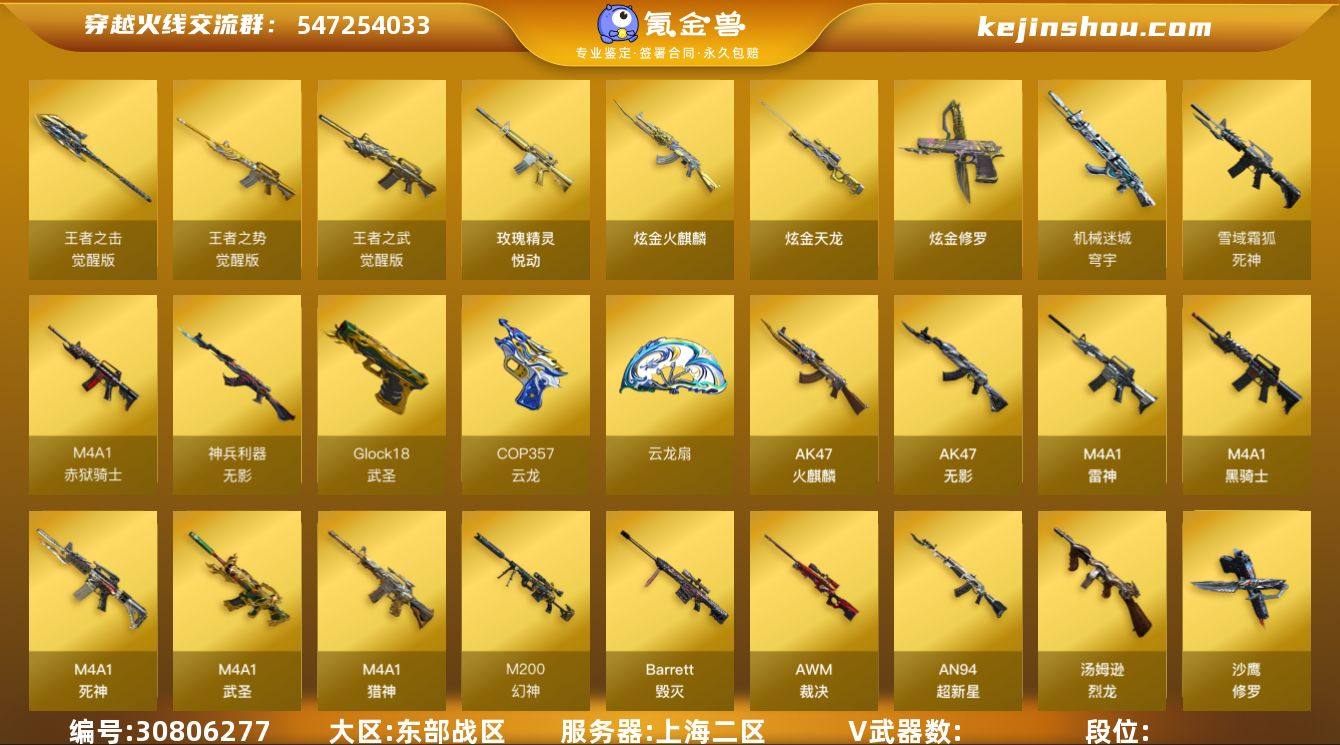M200幻神!丹凤!火麒麟!可二次!C10309-东部战区上海2-58v 【枪王1】【Lv.102 荣耀元帅】VIP5 57V,2王者,4炫金,幻神丹凤/毁灭风暴/天龙CFSTAR/裁决运输船 /火麒麟CFSTAR/火麒麟心动糖果/无影暗月/雷神诺拉 /雷神源计划2.0专属 /雷神耀金/_樱/魅影/华/M200-幻神/Barrett-毁灭/AWM-裁决/M4A1-雷神/M4A1-死神/云龙套装/死神-雪域霜狐-怀旧音效卡/Barrett-毁灭音效卡(截图展示段位不代表实际段位,如赛季更新等不可抗拒因素发生变化、时限道具不保证所剩时间,其余道具看截图)