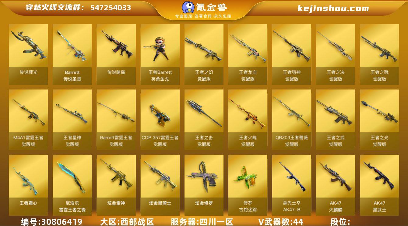 四川一区 可二次 73V3传说28王者 M200-幻神 (5皮/音效卡) 传说圣灵 传说辉光 传说暗裔 王者星神觉醒版 M200-竞技荣光 QBZ03-金色蔷薇 (冠军之薇/女团/音效卡) QBZ-03-王者蔷薇觉醒版 6烈龙+蝴蝶 6烈龙 Scar-白虎 (暗星/音效卡) 白虎电玩蓝兔 HK417-朱雀 Barrett-毁灭 (枪娘/荣耀/冠军/音效卡) Barrett-朱雀 王者之光觉醒版 Barrett-极光 Barrett雷霆王者觉醒版 王者之决觉醒版 AWM-裁决 王者火魄觉醒版 M4A1-雷神 (荣耀/宠儿/女团/n9/音效卡) 王者之武觉醒版 M4A1-黑龙 (冠军之武) M4A1-黑骑士 (马超/地狱火/音效卡) M4雷霆王者觉醒版 王者之幻觉醒版 王者之戮觉醒版 M4A1-死神 王者龙血觉醒版 王者猎神觉醒版 M4A1-青龙 王者霜心觉醒版 AK47-火麒麟 (枪娘/巅峰/音效卡) 无影-波塞冬 AK47-黑武士 AN94-超新星 烈火-9A-91 汤姆逊-烈龙 *6 斯泰尔-蝴蝶 加特林-炼狱 炫金雷神 炫金骑士 王者Barrett-英勇金戈 黑龙吞噬者 双面神 异变清道夫 毒蜂 雷神-枪娘蕾安娜 火麒麟绝迹 牛牛-AK47 M37-葵 AK常胜将军 AK身先士卒 AKB-战士 AK猩红传说 *3 M4小黄鸡 Barrett暗月传说 试炼破坏者 爆炎激光超越Max QBZ03-吕布 闪光弹-云龙 闪光弹雷霆王者觉醒版 高爆手雷竞技荣光 闪光弹竞技荣光 烟雾弹竞技荣光 迷你生化手雷 【王者武器】 雷霆王者之锋 高爆手雷雷霆王者 闪光弹雷霆王者 烟雾弹雷霆王者 【副武器类型】 USP雷暴 柯尔特-冠军之特 柯尔特-竞技荣光 COP-雷霆王者觉醒版 *2 COP-旗袍 沙鹰-修罗 修罗-古蛇迷踪 沙鹰-天神 天神-波塞冬 炫金修罗 Cfcolt1911大黄蜂 PX_2164534
