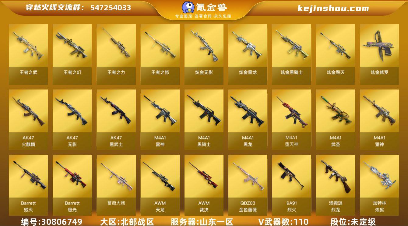 可二次实名 山东一区110V4王者6炫金可排位/QBZ03-金色蔷薇3把/堕天神套装+6套堕天神雷/5修罗/6炼狱2烈龙+死亡之眼/Barrett-毁灭音效卡/AK47-火麒麟音效卡/黑武士-典韦/毁灭-星空/黑龙-能量核心/黑骑士-暗月/M4A1-雷神-精英刀锋/火麒麟-灵狐/金色小号/王者之幻/王者之武觉醒/王者之力/王者之怒/炫金无影/炫金黑龙/炫金骑士/炫金毁灭/炫金修罗/火麒麟/黑龙/2雷神/2黑骑士/6无影/4黑武士/4超新星/3武圣/4黑鲨/猎神/7烈火/天龙/6毁灭/2极光/裁决/Barrett-金色蔷薇/葵/零/迷迭香/战舰护目镜/超级背包3-7/永久防弹衣+永久防弹头盔+永久C4工具钳+永久手雷包/28赛季大师4/详情看图★星迈游★低价出售找回包赔