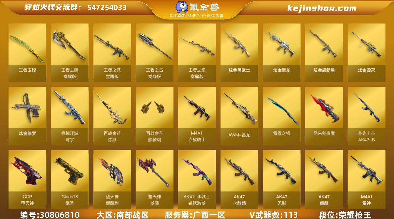 ★可协助解人脸★ 广西一区116v6王者7炫金可排位/会员6/第2赛季荣耀枪王/【2把M200幻神+幻神音效卡+幻神蓝粉色光效/HK417-朱雀/QBZ03-金色蔷薇/死亡之眼/4盘龙/2炼狱/烈龙/7修罗/天神/Glock18-武圣/COP-堕天神/2把柯尔特竞技荣光/尼泊尔雷霆/斩神刀-雷暴/马来剑-夜魔/擎天-竞技荣光/荣耀世冠-龙啸/2套雷霆雷/1套雷暴雷/2套堕天神雷/1套夜魔雷/1套幻灵雷/1套竞技荣光雷/死亡之眼-电子连击/猫猫手套/】【雷神音效卡/黑骑士音效卡/黑龙音效卡/死神-雪域霜狐-怀旧音效卡/AWM-昌龙-怀旧音效卡/炼狱-百战金芒-庆典舞曲音效卡/】【/雷神-烈虎皮肤/雷神-机甲刑天皮肤/黑骑士-摸金校尉/龙啸-蛇姬皮肤/火麒麟-百城/屠龙-破浪逐光皮肤/黑鲨-电流骇客皮肤/裁决-运输船皮肤/毁灭-风暴/炼狱-电子连击皮肤/裁决-羽掣皮肤/战神-紫绶金章皮肤/战神-流金岁月皮肤/AK47-B-常胜将军-刘备/天启-暗月/AK47-B-常胜将军-刘备/黑骑士-暗月/黑龙-暗月/屠龙-惊鸿皮肤/修罗-星空/天龙-能量核心/麒麟刺-萌杀皮肤/毁灭-青帝/极光-能量核心/无影-能量核心/雷神-暗月/雷神-化蛇皮肤/火麒麟-雷神/毁灭-神秘黑洞皮肤/雷神-星空/修罗-能量核心/黑骑士-破界皮肤/火麒麟-CFSTAR/火麒麟-平天大圣/毁灭-黑大圣皮肤/屠龙-彼岸花皮肤/火麒麟-华夏之心/天龙-CF STAR/火麒麟-AG战队皮肤/雷神-诺拉皮肤/AWM-天龙-传奇70KG/麒麟刺-月皮肤/M4A1-千变-孔明皮肤/M4A1-黑龙-361/屠龙-春桃皮肤/AK47-老兵传说皮肤/修罗-CFSTAR/】【/葵/樱/魅影/零-纪元/战地猎狐/狐影/葵-阿尔法武装/奇洋探员/乔伊教练/蛇隐宗/修道士/雪域霜狐/云海玲珑/王者-零-传说之路/樱-战斗天使/】【/王者之影-觉醒版/王者之戮-觉醒版/王者玉锋/王者之击-觉醒版/王者之啸-觉醒版/炫金武士/炫金超新星/炫金黑龙/炫金毁灭/炫金修罗/HK417-朱雀-蛇隐宗/巴雷特-零-水下丽影/KAC锯式机枪-黑桃战神/M37-...
