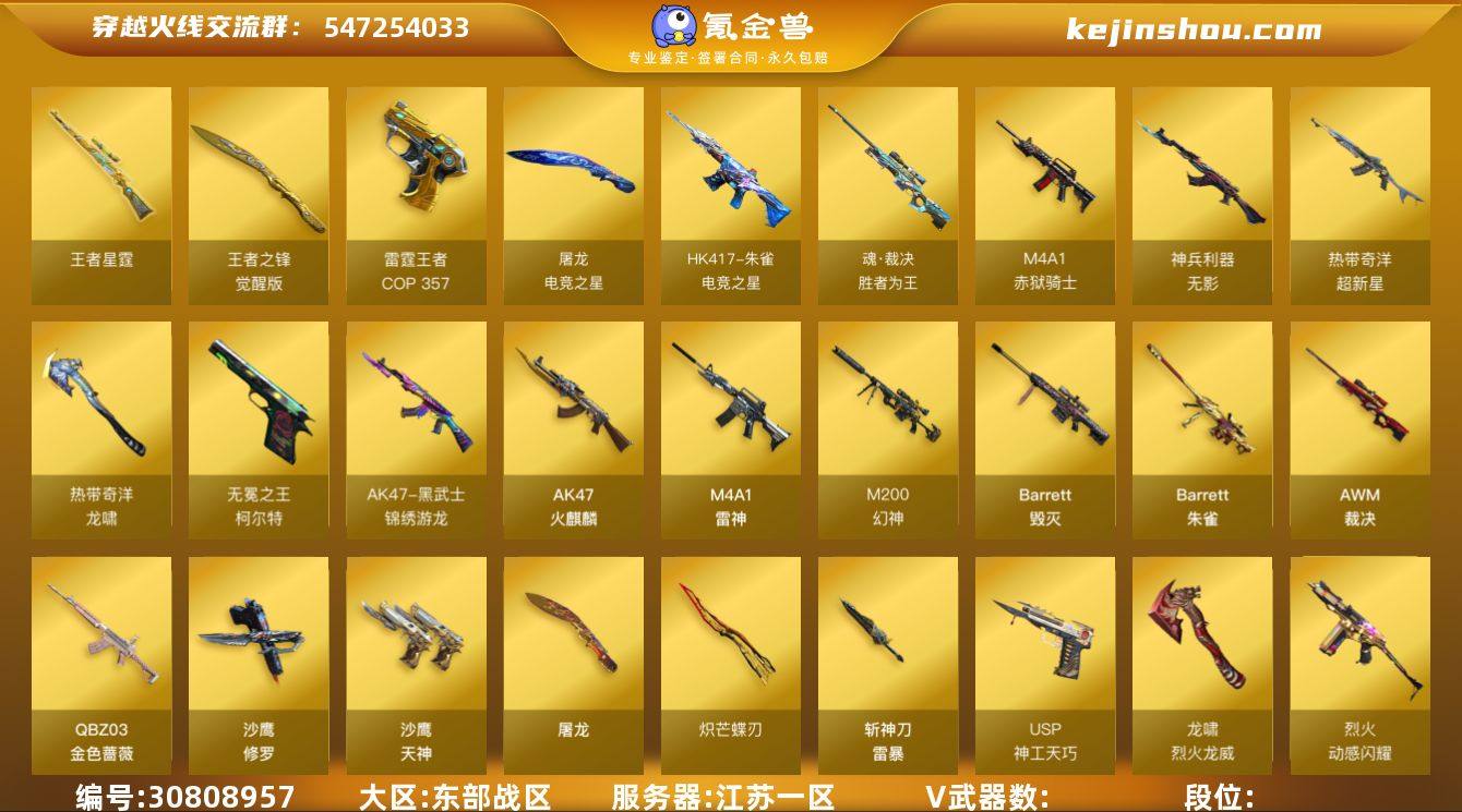 ABC9443/东部/江苏一区/钱包注销/可排位/可二次/掌火ID;723909809/53V/【双传说/幻神三件套】/传说影煞/传说夜影/幻神/幻神音效卡/幻神宠儿/幻神N9/幻神CFS2022/王者星霆/白虎之魄/裁决/朱雀电竞之星/QBZ金色蔷薇/柯尔特无冕之王/USP神功天巧/炽芒蝶刃/天龙乔伊教练/COP雷霆王者/四防未开/传说影煞/暗夜审判/【皮肤】/雷神CFS十周年/黑骑士CFS2021/毁灭AG-CFPLS15冠军/毁灭CFS2018/雷神荣耀之魄/金色蔷薇枪娘阿敏/永久AC/细节看图/