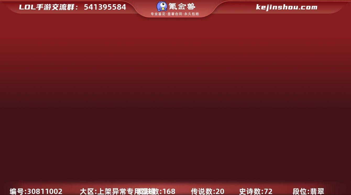 皮肤数:168 典藏皮肤数量:0 神话皮肤数量:3 传说皮肤数量:20 史诗皮肤数量:72 段位:翡翠 卖家说:附赠王者150皮小号,可人脸包赔