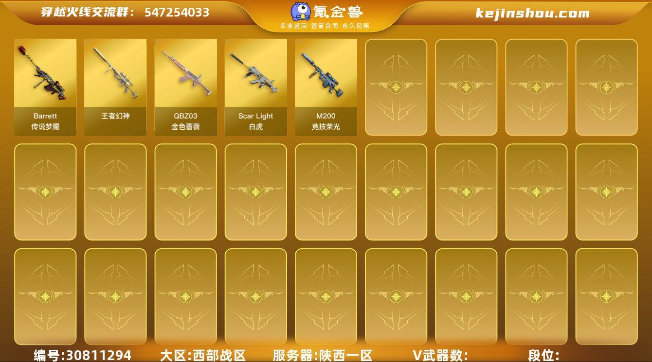 TE8765/西部/陕西一区/可排位/QQ钱包未注销/120V/传说梦魇/王者幻神/M200竞技荣光/夜魔套/白虎/白虎电玩蓝兔/QBZ金色蔷薇/QBZ王者蔷薇/荣耀世冠柯尔特/朱雀/6烈龙/火麒麟/黑龙/雷神/黑骑士/黑武士/毁灭/裁决/王者之势/王者之烈/王者冰魄/王者之灵/裁决雪莉杨/炼狱小刚/COP白鲨/炫金天龙/四防已开/王者魅影/王者葵翩若惊鸿/四防未开/王者迷迭香/【音效卡】/火麒麟音效卡/毁灭音效卡/黑骑士音效卡/雷神音效卡/裁决音效卡/【皮肤】/雷神荣耀世冠AG/雷神宇航兔/火麒麟巅峰荣耀/毁灭耀金/火麒麟雷神/火麒麟AG战队/