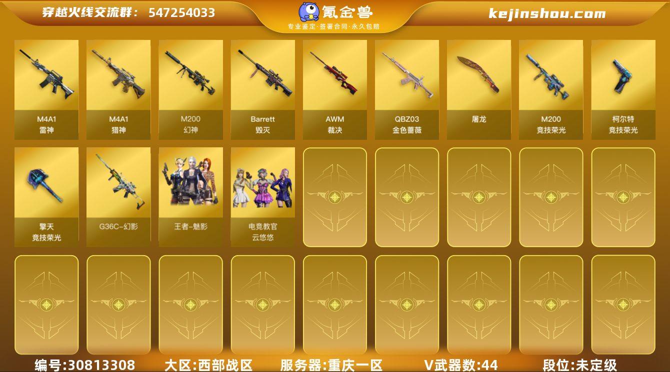 9494/西部/重庆一区/可排位/【荣耀之巅42豆】【Lv.102 荣耀元帅】VIP4/44V/幻神/幻神Heartshot/王者幻神/M200竞技荣光套/QBZ金色蔷薇/G36C幻影/金色蔷薇古蛇迷踪/朱雀电竞之星/柯尔特荣耀世冠EP/裁决/裁决流光秘银/毁灭/雷神/猎神/屠龙电竞之星/龙啸烈火龙威/3套竞技荣光手雷/【皮肤音效卡】/毁灭虹光风暴/毁灭英雄计划/毁灭百城浙江/雷神荣耀之魄/雷神呢LGD/雷神维纳斯/屠龙彼岸花/屠龙破浪逐光/黑龙音效卡/死神雪域霜狐怀旧音效卡/【2个四防角色】/电竞教官云悠悠/王者魅影/【其他角色】/战地猎狐/雪域霜狐/乔伊教练/零水下丽影/【玩偶武器】/朱雀蛇隐宗/裁决雪莉杨/ScarLight-马枪/迷你白狐///各种饰品/各种道具/细节看图/【此账号未被封过十年】