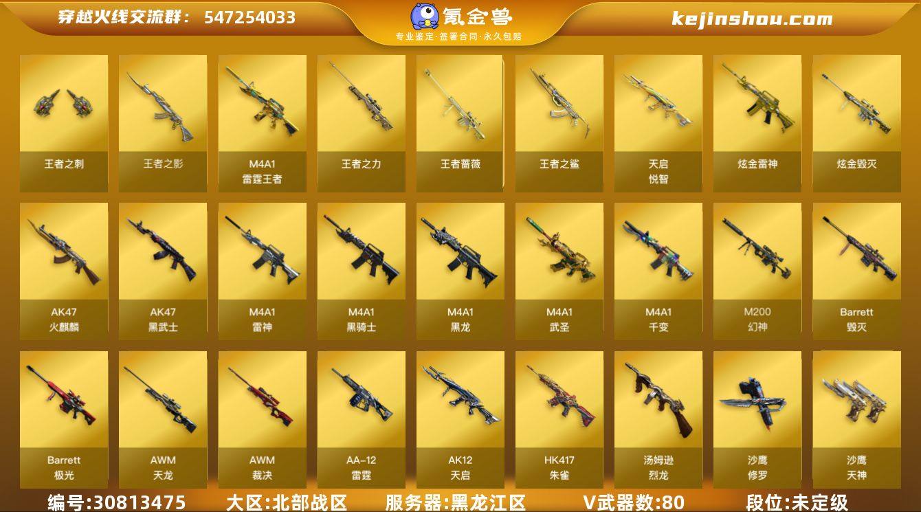 2973/北部/黑龙江区/可排位/段位未定段/Lv.102 荣耀元帅/VIP6/80V/【三防传说】/传说星骇/幻神/朱雀/王者芳薇/王者玄武/6烈龙/毁灭/极光/天龙/裁决/雷神/黑龙/火麒麟/三套竞技荣光雷/【音效卡】/苍鸣雷神音效卡/雷神音效卡/黑骑士音效卡/毁灭音效卡/碧霄极光音效卡/天神动感闪耀音效卡/炼狱百战金芒庆典舞曲音效卡/【枪皮】/毁灭墨兰/毁灭魔灵/极光高能霹雳/雷神源计划2.0/炼狱迷彩/【四防角色】/王者春/【角色】/零/樱/迷迭香/修道士/云海玲珑/铁骑荣耀/【小人枪】/火麒麟灵狐/COP旗袍/迷你深渊冰龙/【挑战】/爆炎极光超越MAX/【道具】/永久烟雾头/护目镜/超级背包/各种戒指/各种光效/各种玩偶/永久AC/永久雷包/细节看图/【此账号未被封过十年】
