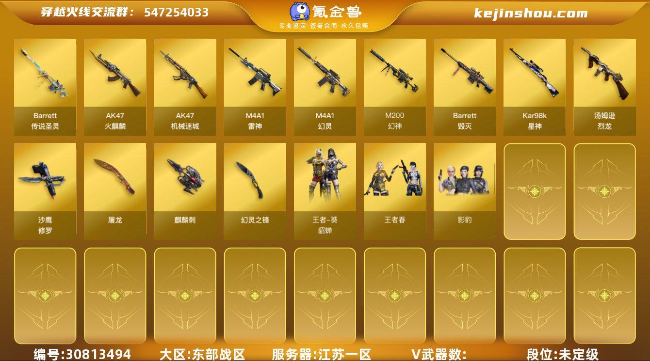 [14430578]7531,东部,江苏一区,可排位,48v,【,幻神三件套,幻神,幻神音效卡,幻神荣耀世冠白鲨,】,星神,传说辉光,传说圣灵,QBZ王者蔷薇,觉醒版,【,四防角色,影豹,王者春,王者葵貂蝉,】,COP幻灵,*2,火麒麟音效卡,火麒麟冠军之心,毁灭音效卡,毁灭冠军之怒,雷神冠军之魄,AA12擎天柱III,斯泰尔蝴蝶,牛牛AK,有过十年记录,找回包赔